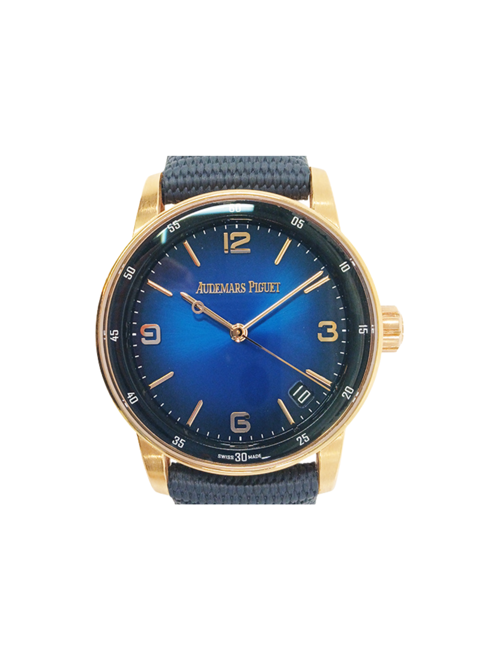 A blue hand-stitched alligator strap completes the design with comfort and elegance. In short, the Audemars Piguet Code 11.59 Selfwinding Rose Gold Blue Dial 15210OR.OO.A028CR.01 combines modern architecture, refined materials, and advanced mechanics, making it a standout piece for collectors seeking something beyond the traditional sports watch.
