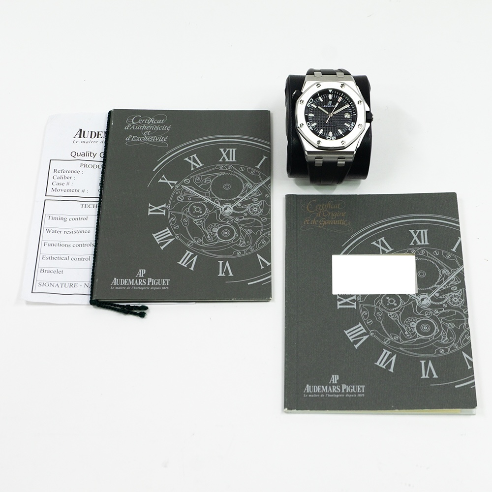 The 42mm stainless steel case delivers impressive strength and durability, giving the watch a powerful presence on the wrist. Its signature octagonal bezel, secured by exposed screws, reinforces Audemars Piguet’s industrial aesthetic. Meanwhile, the black dial features large luminous hour markers and hands, ensuring exceptional legibility in low-light and underwater conditions.