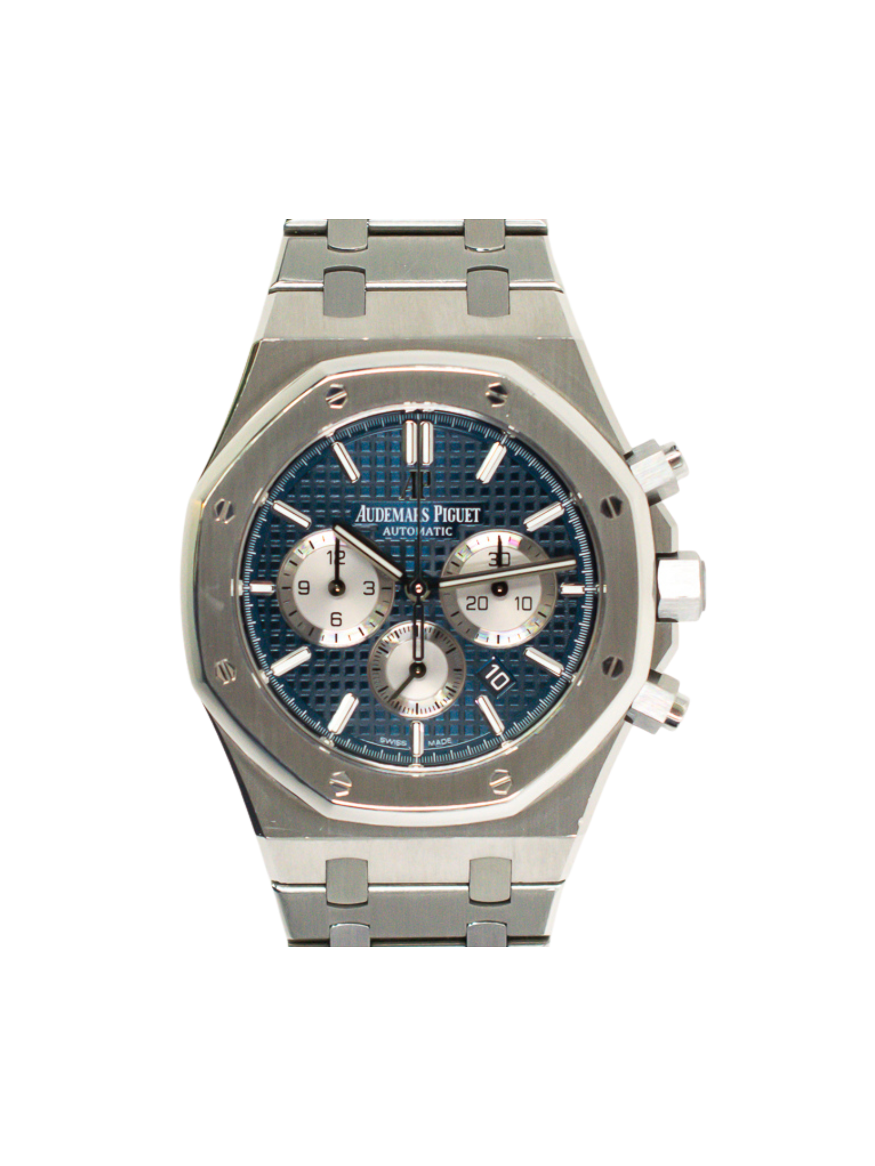 The Audemars Piguet Royal Oak Chronograph Stainless Steel with a Blue Dial stands as a defining icon in modern luxury watchmaking. This remarkable chronograph blends bold design with exceptional craftsmanship. Its 41mm stainless steel case creates a strong and elegant presence on the wrist. The signature octagonal bezel adds a striking architectural element that instantly commands attention.