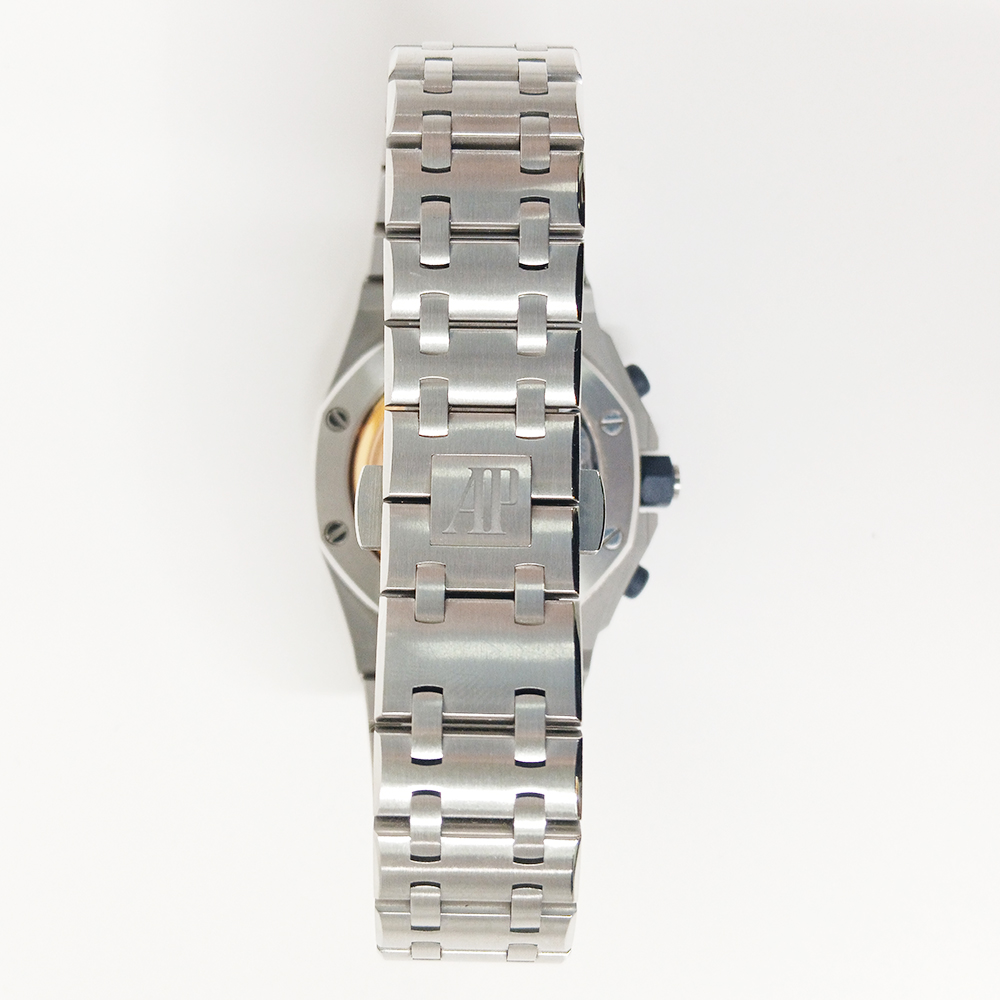 Audemars Piguet crafts the 42mm case from robust stainless steel. As a result, the watch offers durability and strong wrist presence. At the same time, the blue dial features the signature Méga Tapisserie pattern, adding depth and texture. Luminous hands and hour markers ensure excellent legibility. In addition, the chronograph subdials integrate seamlessly for balanced functionality.