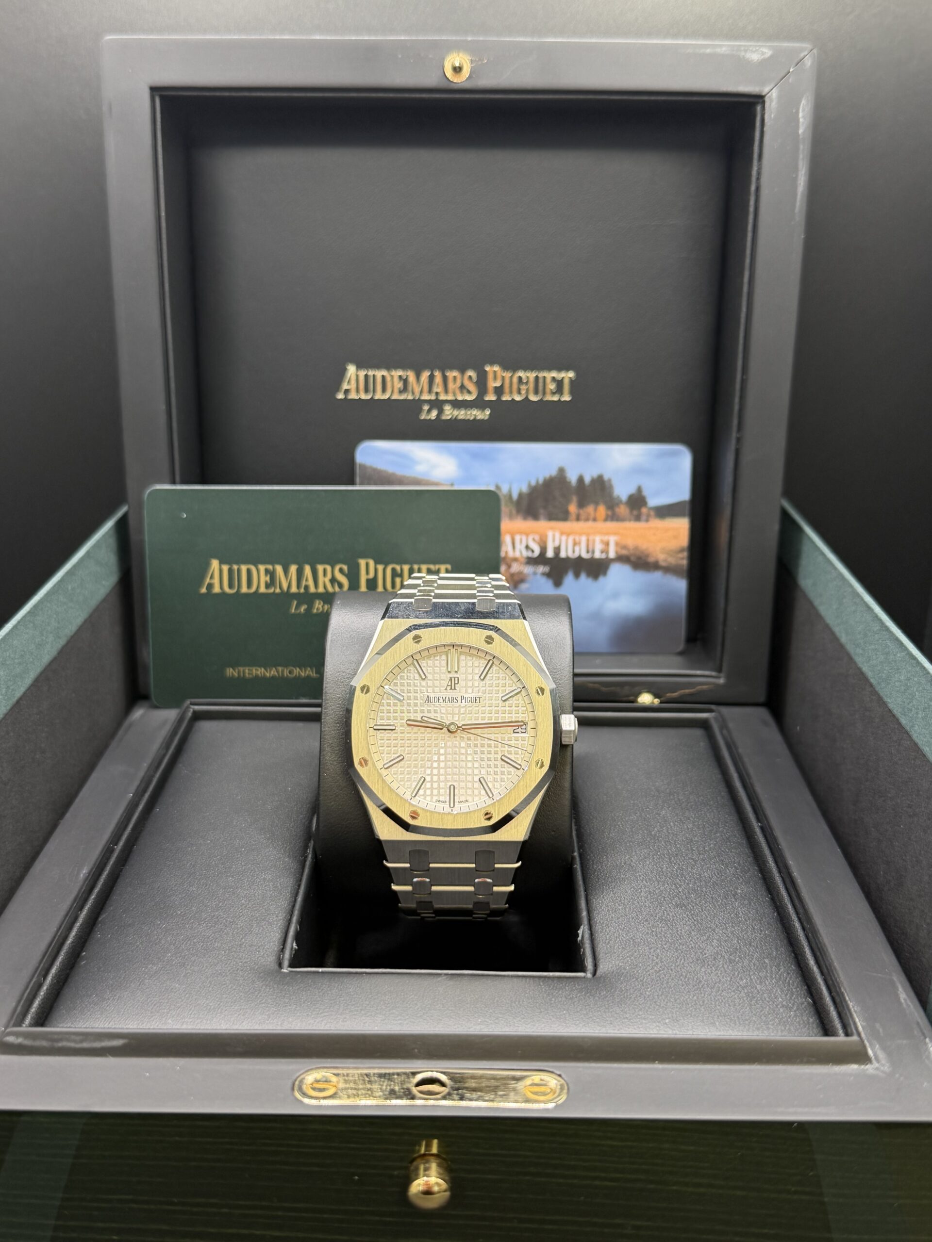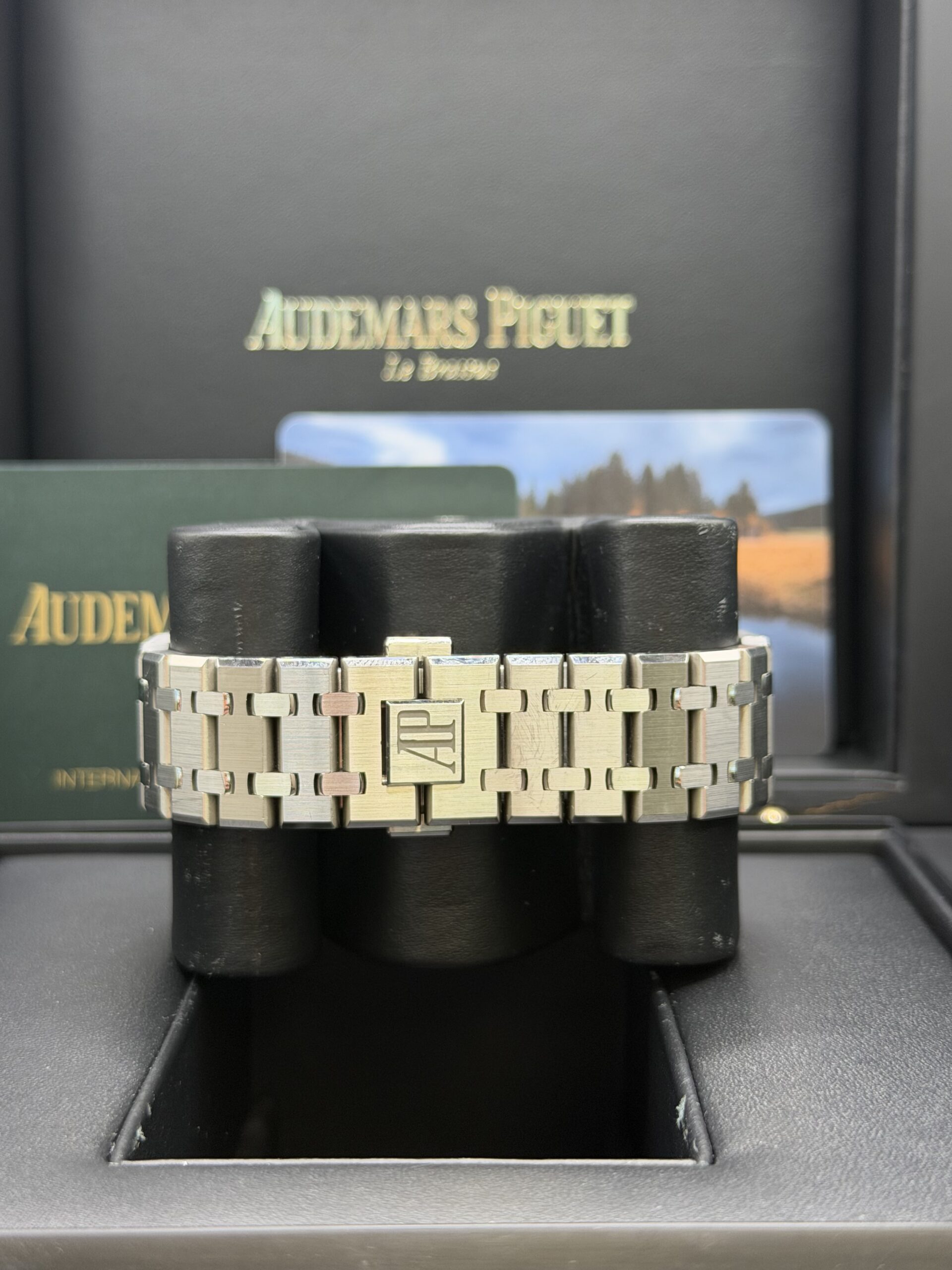 Audemars Piguet powers this model with the automatic Caliber 4302. Therefore, it delivers reliable performance, enhanced efficiency, and a 70-hour power reserve. The integrated stainless steel bracelet ensures exceptional comfort and maintains the Royal Oak’s unmistakable profile.
