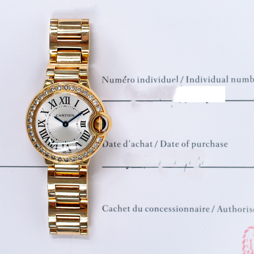 Cartier Ballon Bleu Diamond Bezel Rose Gold Ivory Roman Dial WE9002Z3