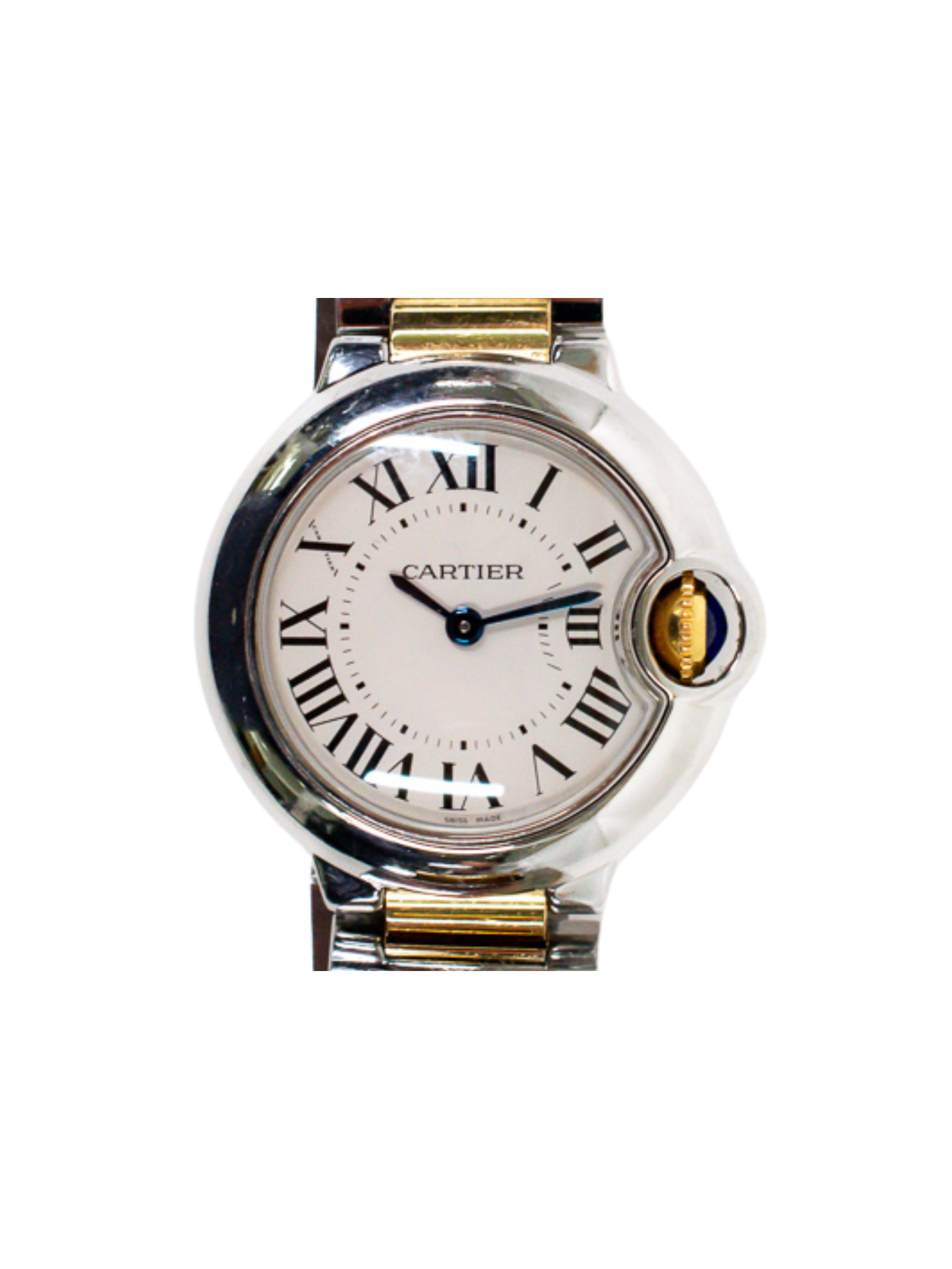 Historically, the Ballon Bleu line has been celebrated for its innovative design, which subtly balances contemporary style with traditional Cartier elegance. With its sophisticated aesthetic and meticulous craftsmanship, the Cartier Ballon Bleu Stainless Steel/Yellow Gold with a White Roman Dial is recognized as a coveted collector’s piece.