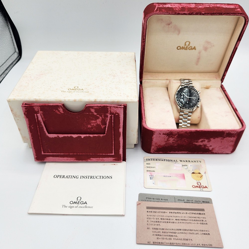 The stainless steel case features a mix of polished and brushed finishes for durability and classic style. In addition, the black dial displays the signature Speedmaster layout with three sub-dials. These track chronograph hours, minutes, and running seconds. Luminous markers and hands ensure clear visibility, while the tachymeter bezel supports precise speed measurement.