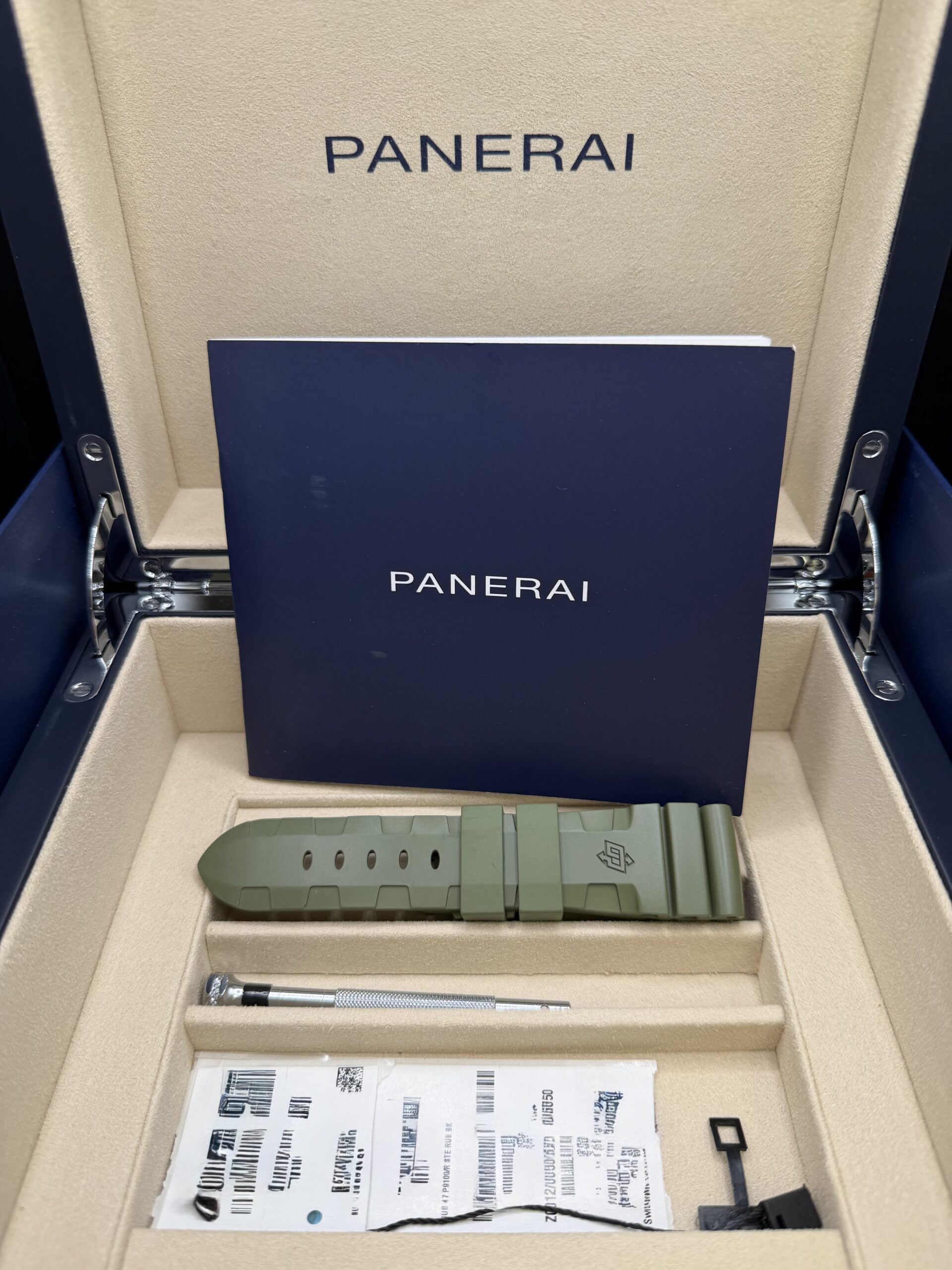 The watch includes the signature crown-protecting bridge. This feature reinforces Panerai’s history of professional diving watches. The design reflects decades of military partnerships and underwater exploration. The watch also features a unidirectional bezel that supports precise timing during dives.