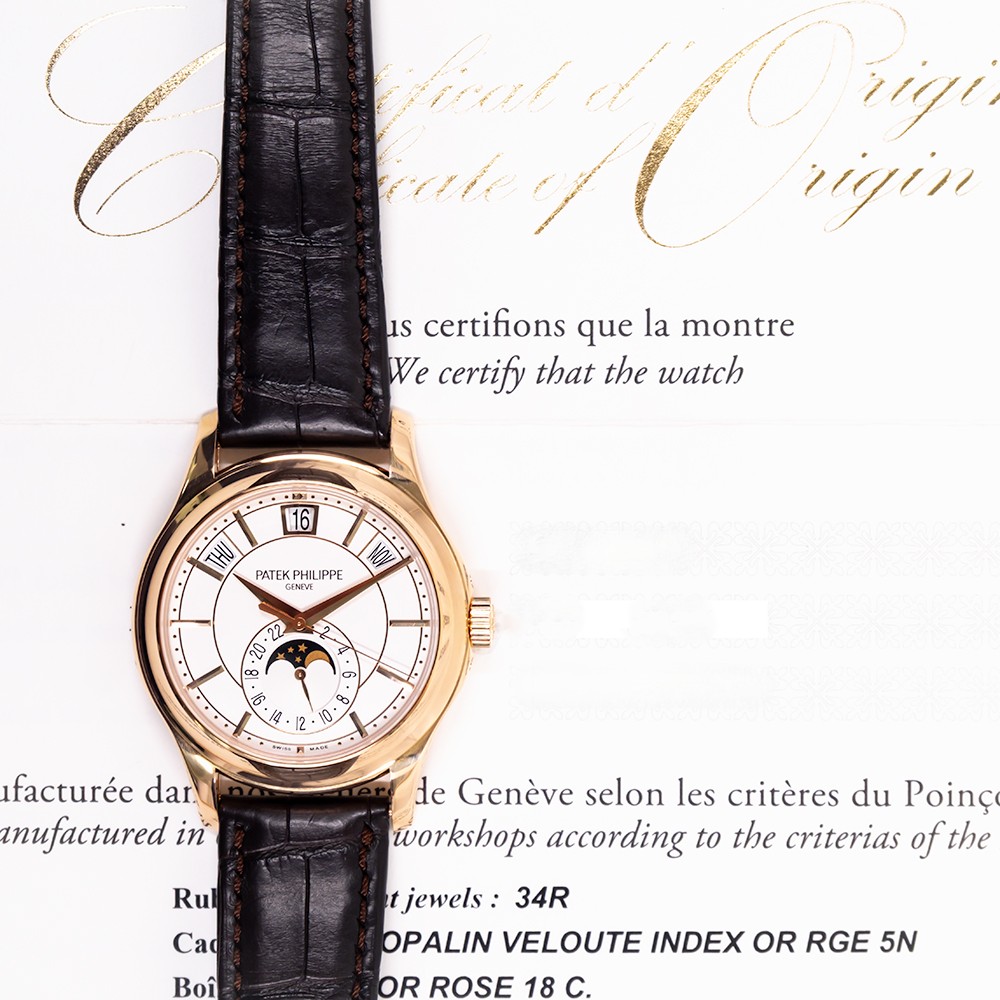 The Patek Philippe Annual Calendar Moon Phases Rose Gold with a White Dial is a symbol of horological excellence. Crafted from 18k rose gold, it radiates elegance and sophistication.