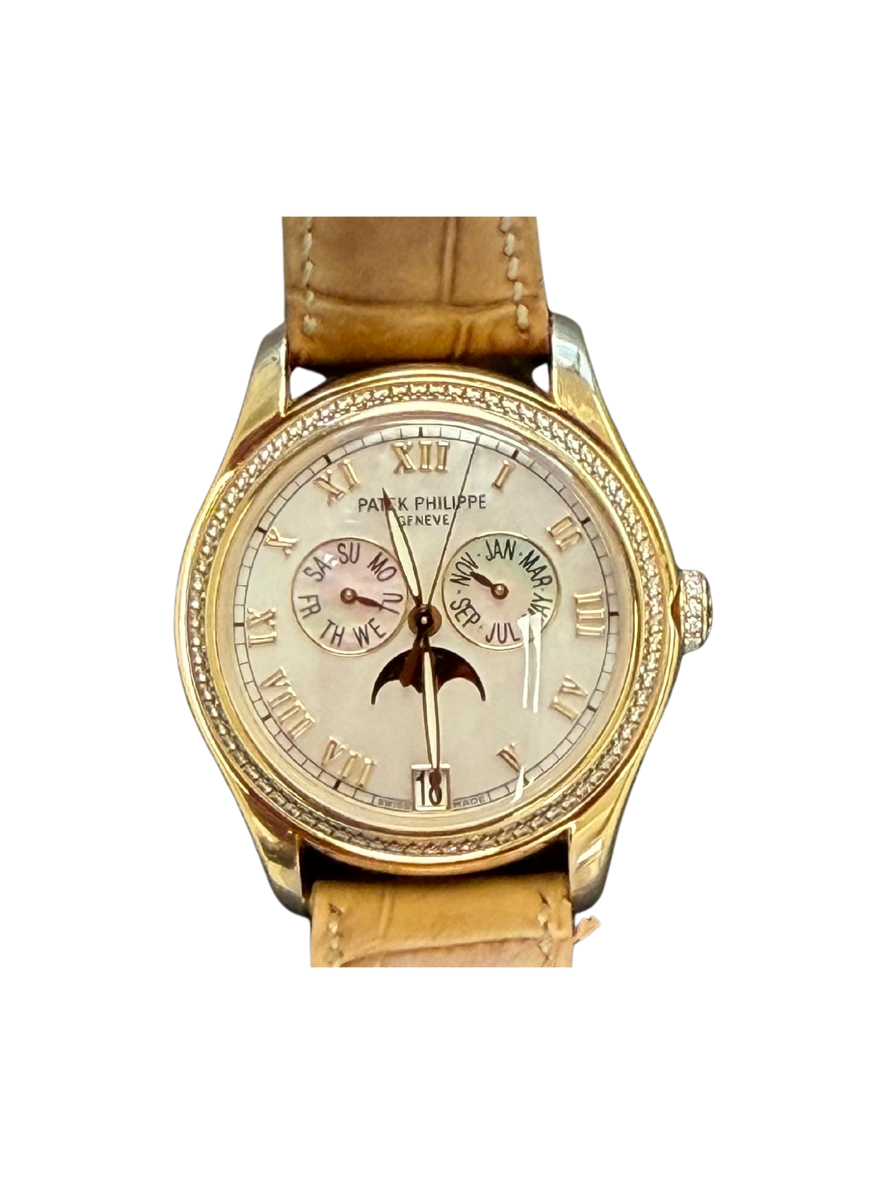 The Patek Philippe Annual Calendar Yellow Gold MOP Roman Dial 4936J-001 represents refined elegance and masterful craftsmanship. Patek Philippe created this model to showcase its expertise in mechanical innovation and timeless design. Every detail highlights the brand’s dedication to luxury and precision.