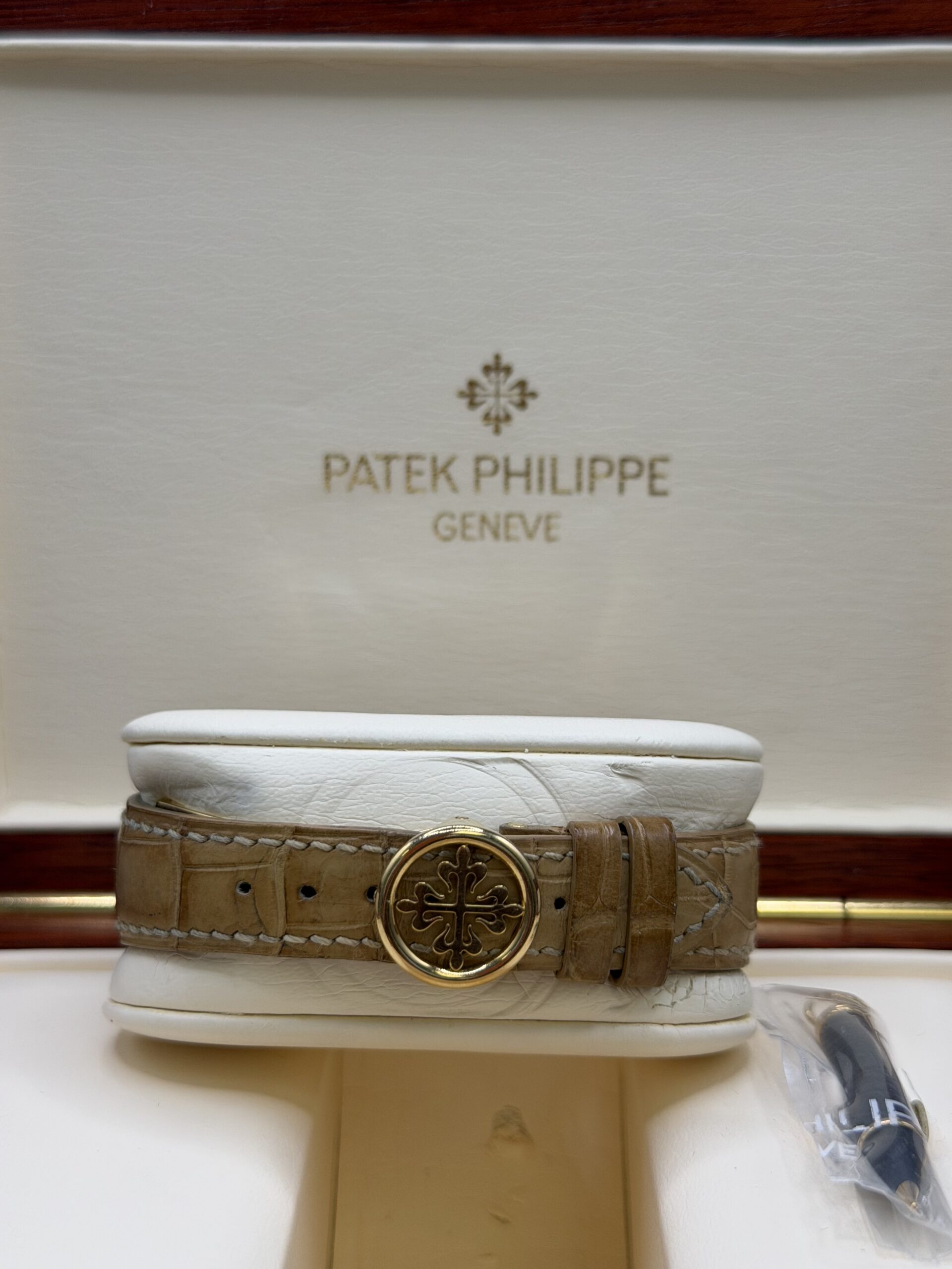 Inside the case, an automatic mechanical movement powers the watch with exceptional reliability. Patek Philippe finishes every component to the highest standards. The movement reflects generations of watchmaking excellence and innovation.