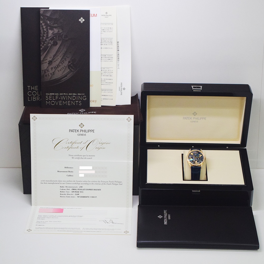 Inside, the Calatrava 5077/100R-032 houses the Patek Philippe Caliber 240 movement. This ultra-thin automatic movement includes a micro-rotor for efficient winding. It showcases exquisite Geneva Seal finishing.