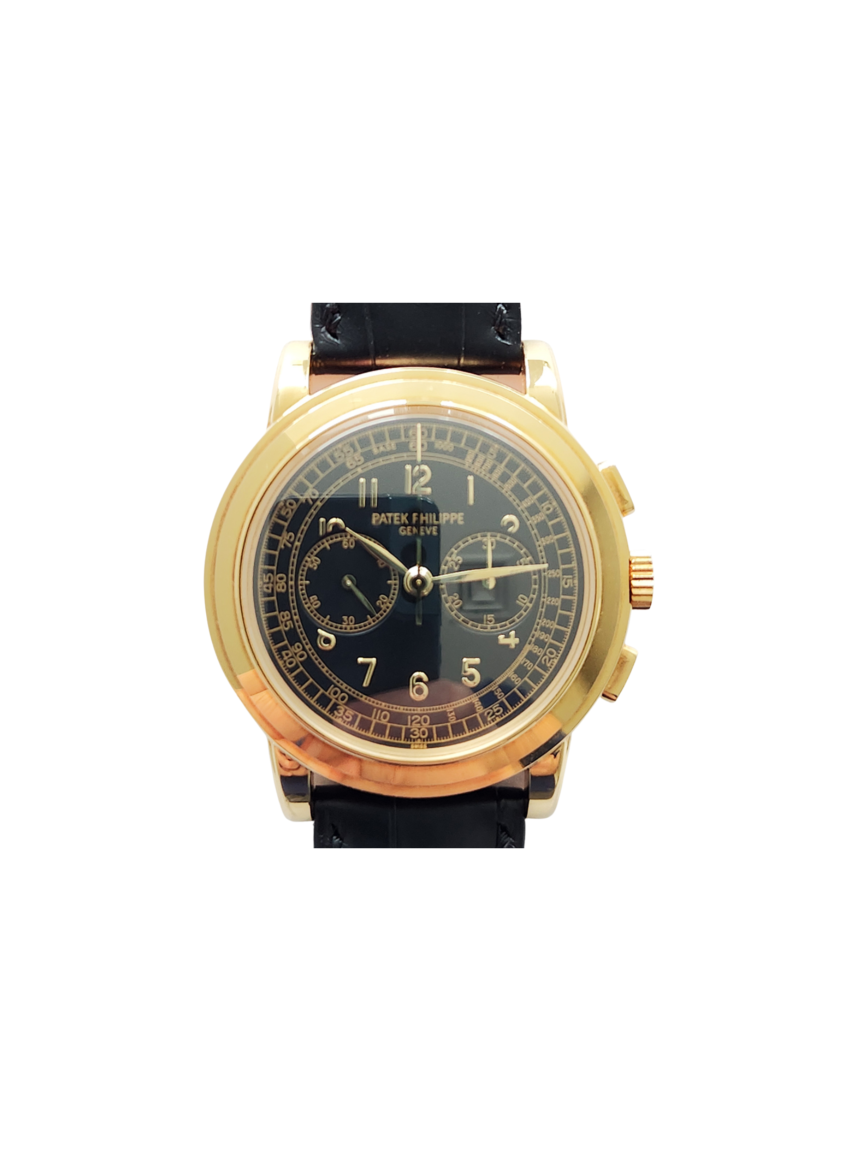 Patek Philippe Complication Chronograph Yellow Gold Black Arabic Dial 5070J-001