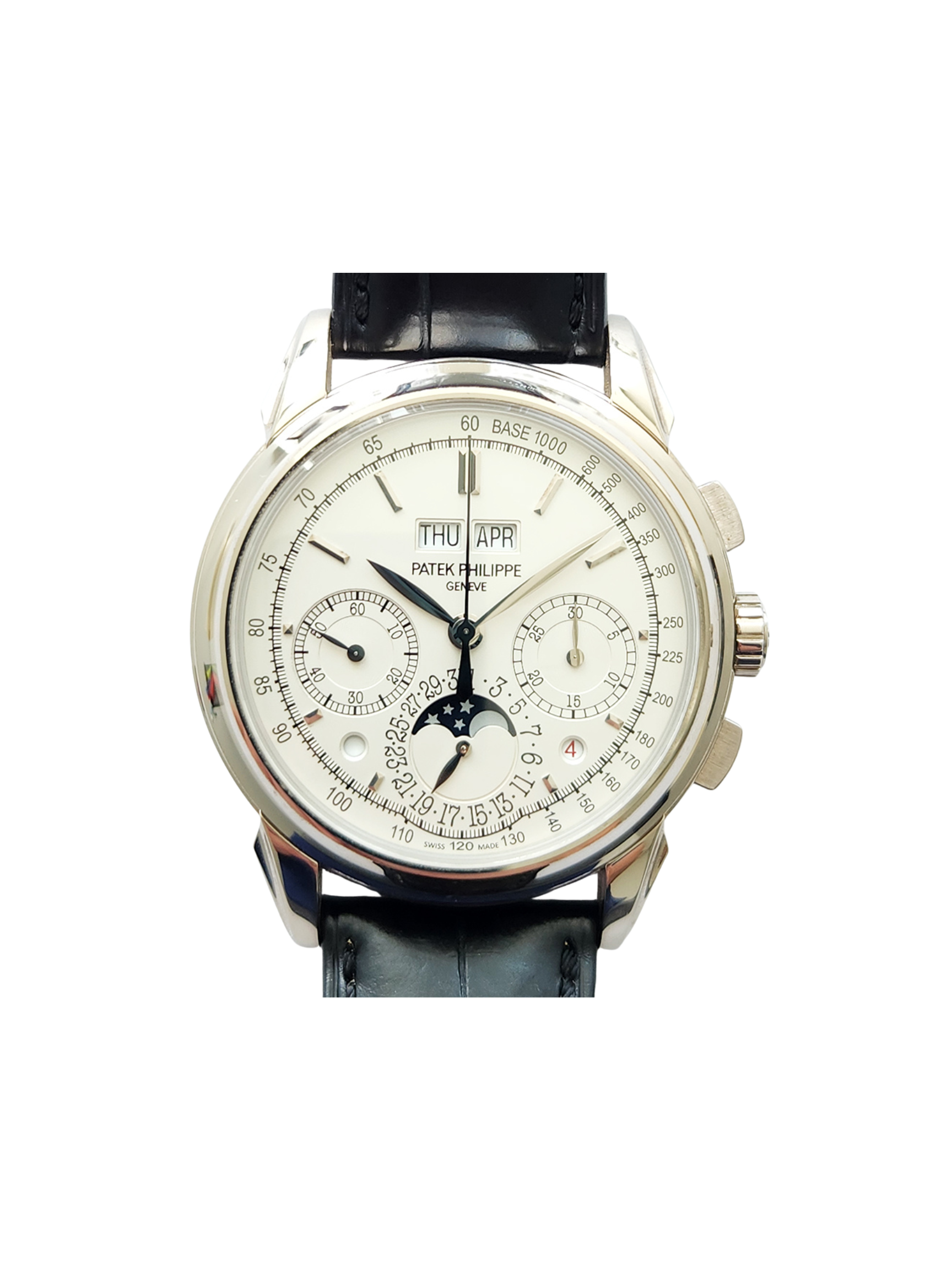 For comfort and style, the white gold case pairs with a hand-stitched alligator strap and matching folding clasp, reinforcing the watch’s timeless appeal. Ultimately, the 5270 line continues Patek Philippe’s legacy of chronograph-perpetual calendar excellence.