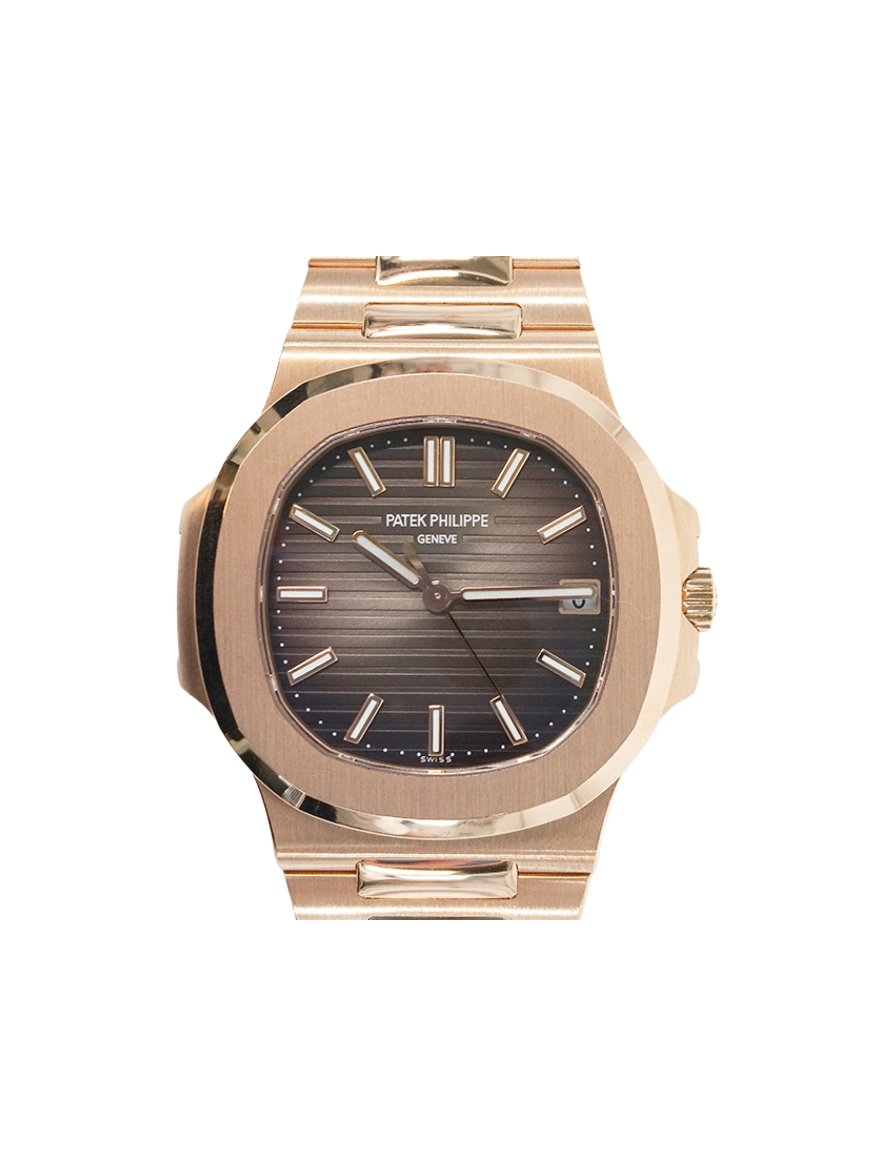 The Patek Philippe Nautilus Rose Gold with a Brown Stick Dial defines modern luxury with timeless appeal. This iconic model blends sporty design with refined elegance, making it highly sought after. Crafted entirely from 18k rose gold, the case and bracelet deliver warmth, weight, and unmistakable prestige.