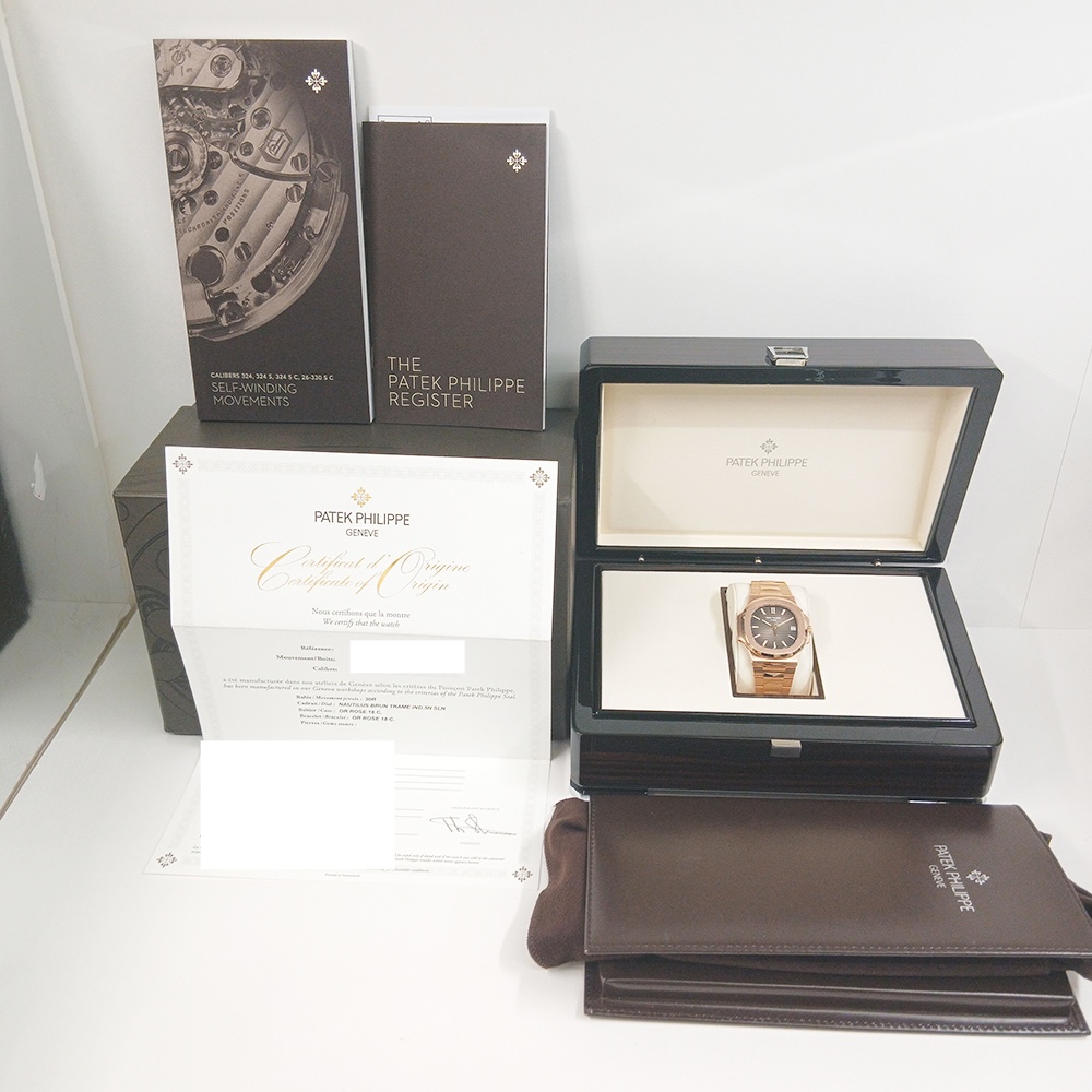 The rich brown sunburst dial adds depth and sophistication to the design. Rose gold stick hour markers and hands provide a clean, balanced aesthetic. The horizontal embossing enhances texture while preserving the Nautilus signature look. A sapphire crystal case back reveals the beautifully finished automatic movement within.
