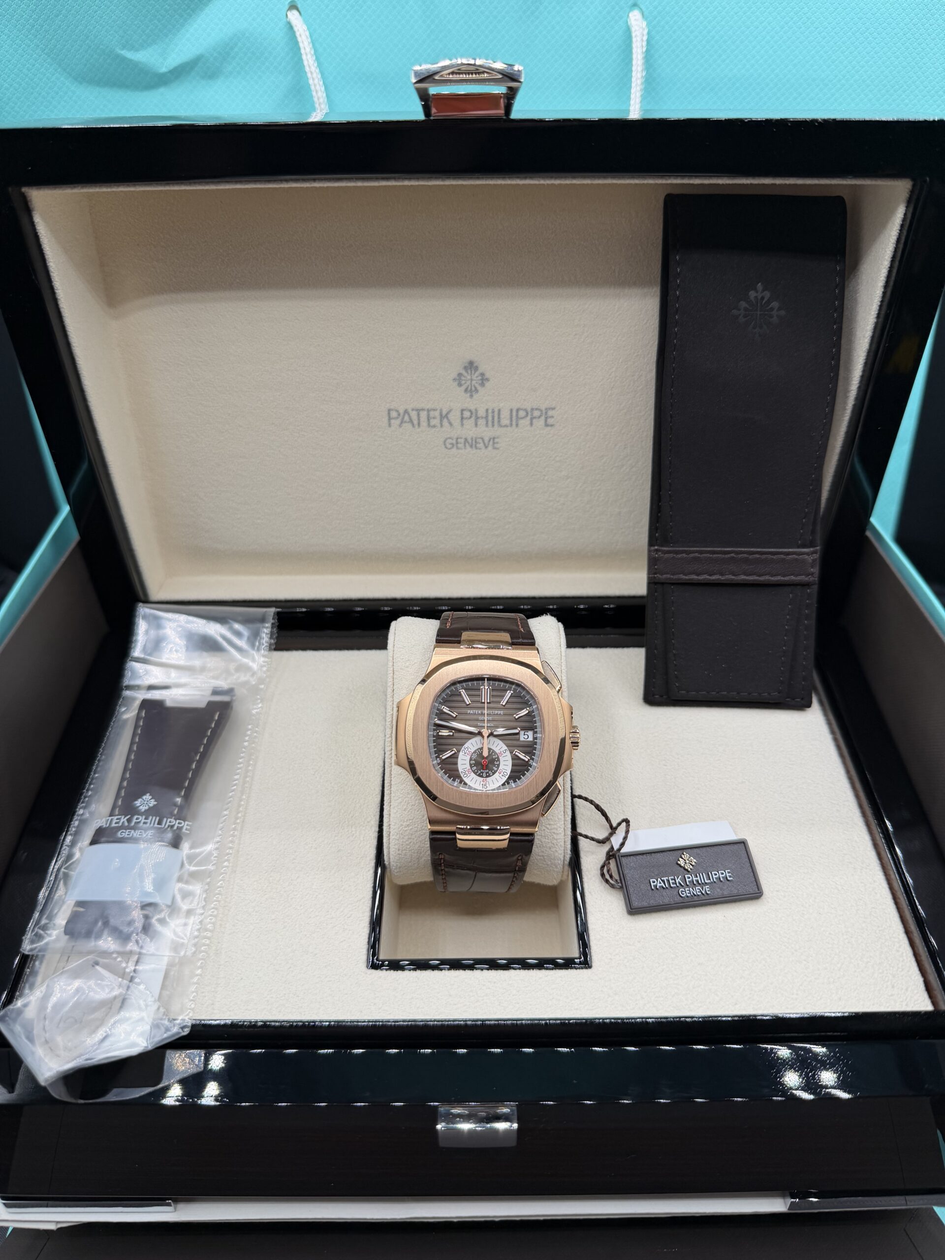 2022 Patek 5980R-001 Tiffany & Co. As you can see from the photos this is a true collectors package with every little detail included down to the white bow string. The watch has never been polished and shows some light signs of being worn.