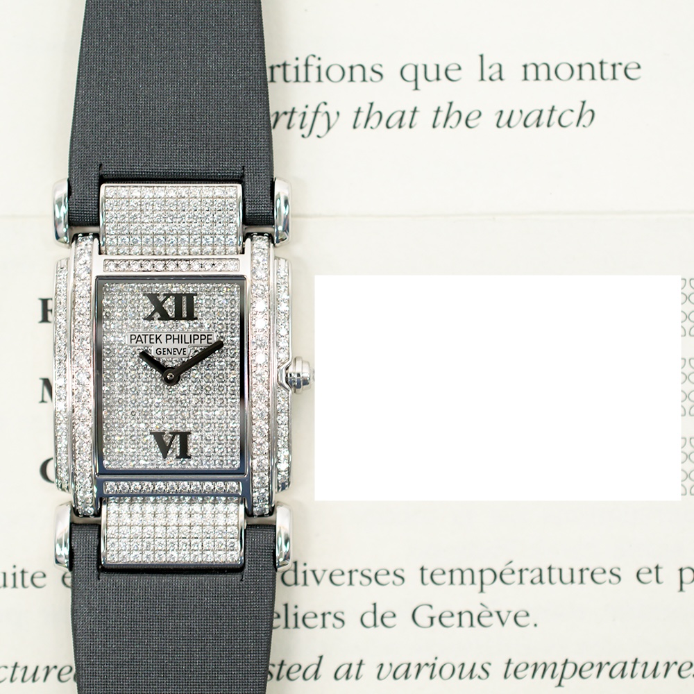 Patek Philippe Twenty-4 White Gold Diamond Bezel Pave Diamond Dial 4910G-001