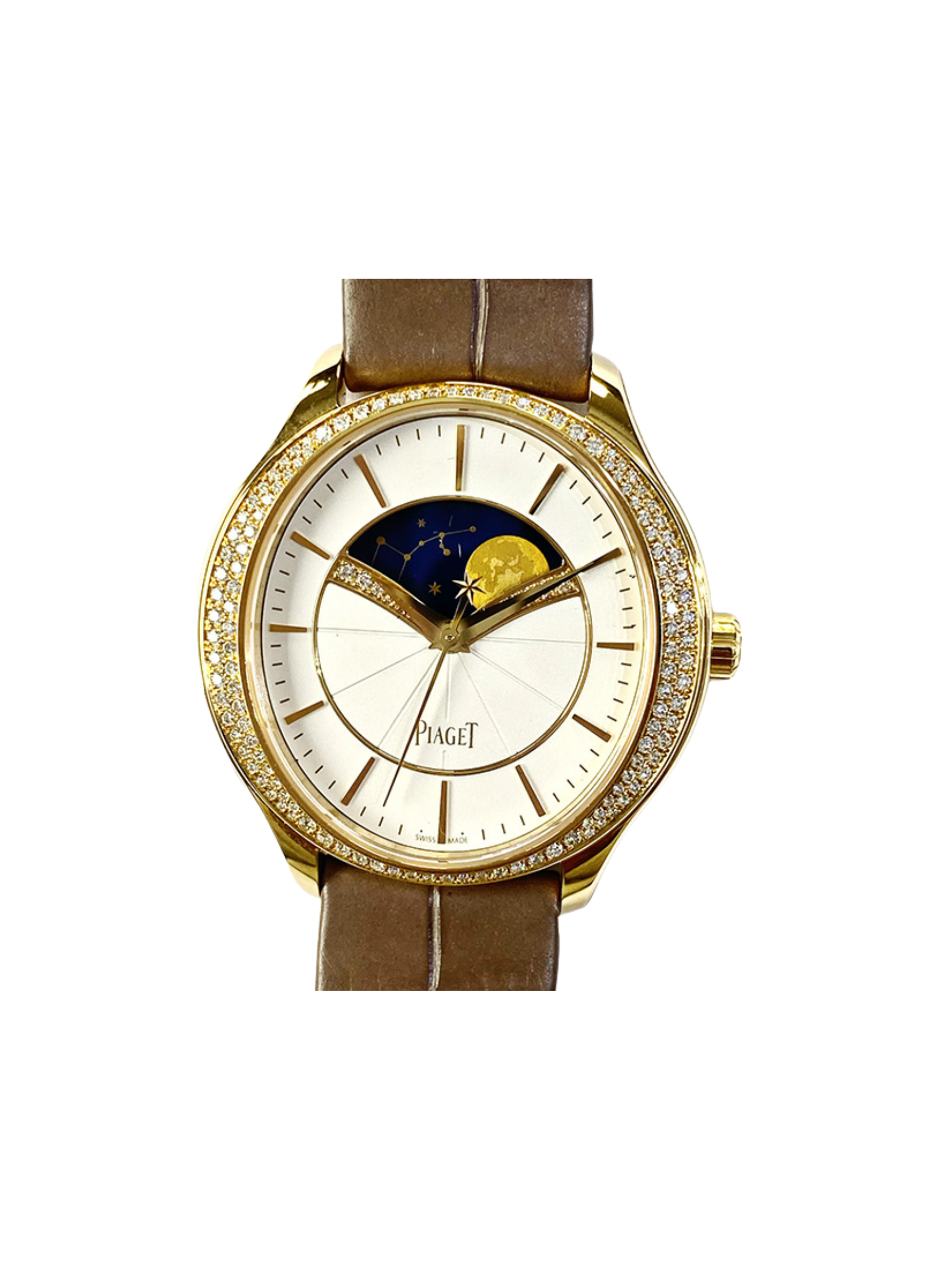 The watch highlights a moon-phase complication that enhances its poetic appeal while showing Piaget’s technical expertise. The complication offers exceptional accuracy and remains a focal point of the design. while the curved lugs ensure a comfortable fit and enhance the watch’s feminine profile.