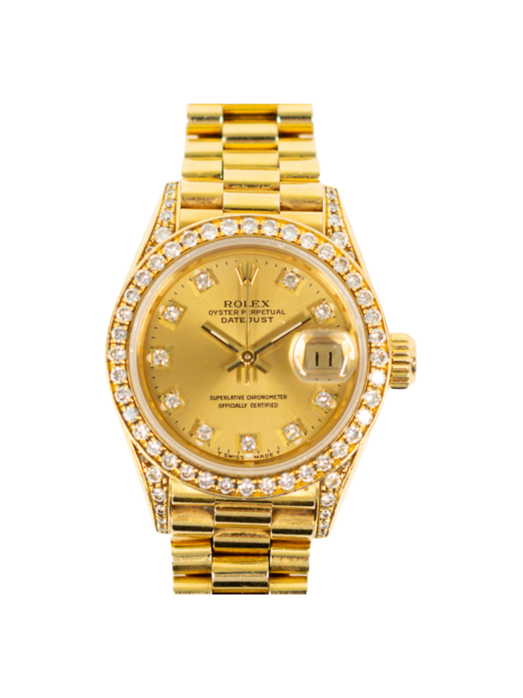 Rolex Datejust 26mm Yellow Gold Diamond Bezel Champagne Diamond Dial 69158G