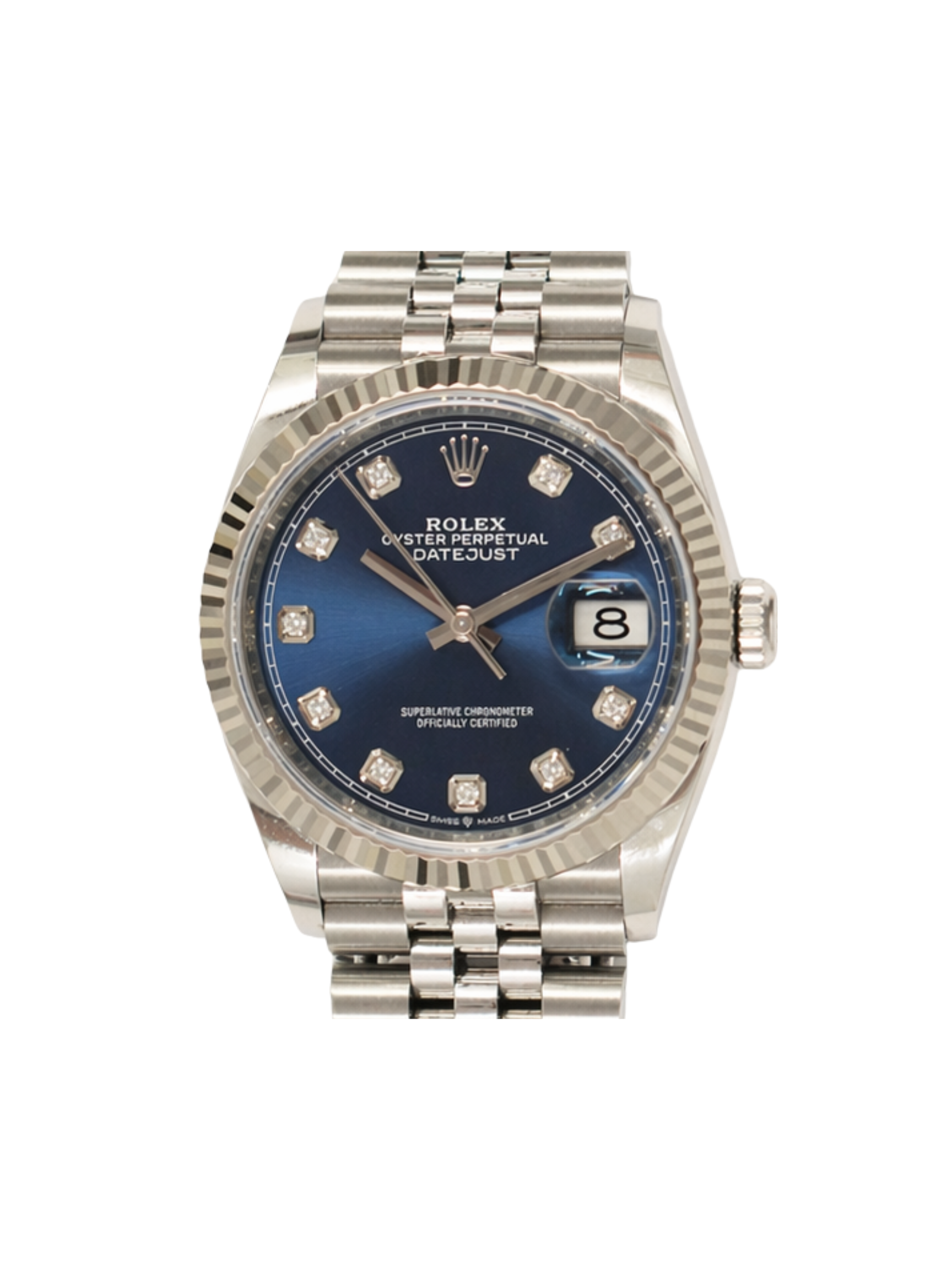 Overall, the Rolex Datejust 36 Stainless Steel and White Gold Blue Diamond Dial represents heritage and modern refinement. It is ideal for collectors who value luxury, craftsmanship, and timeless Rolex design.