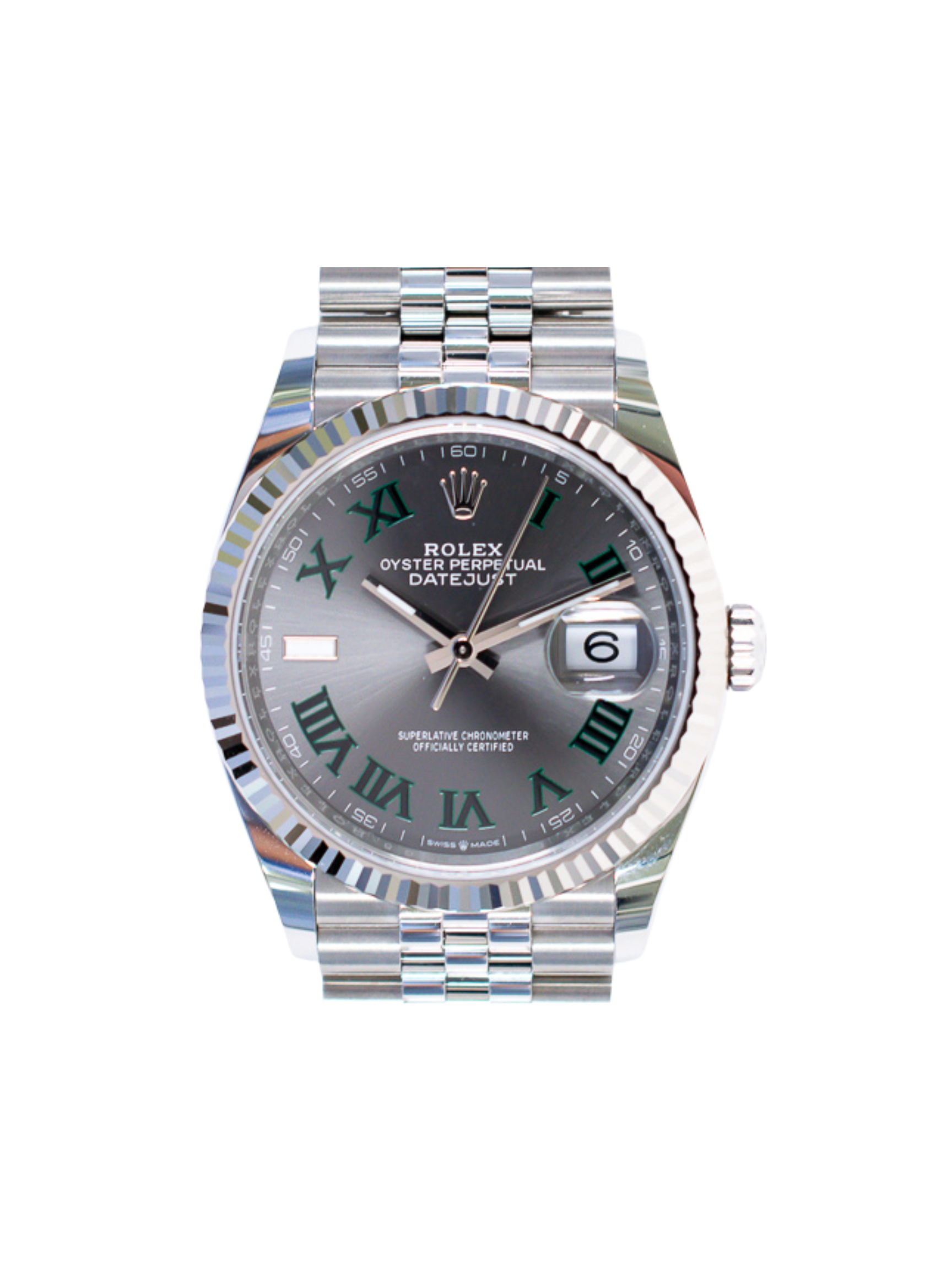 The Wimbledon dial makes this timepiece instantly recognizable. It features a slate grey background paired with vivid green Roman numerals. These numerals create exceptional legibility and a unique visual effect. Rolex designed this dial to highlight its long partnership with Wimbledon, adding historical depth to the piece. This dial variation remains one of the most sought-after choices in the entire Datejust lineup. It brings a sporty yet sophisticated personality that appeals to collectors.