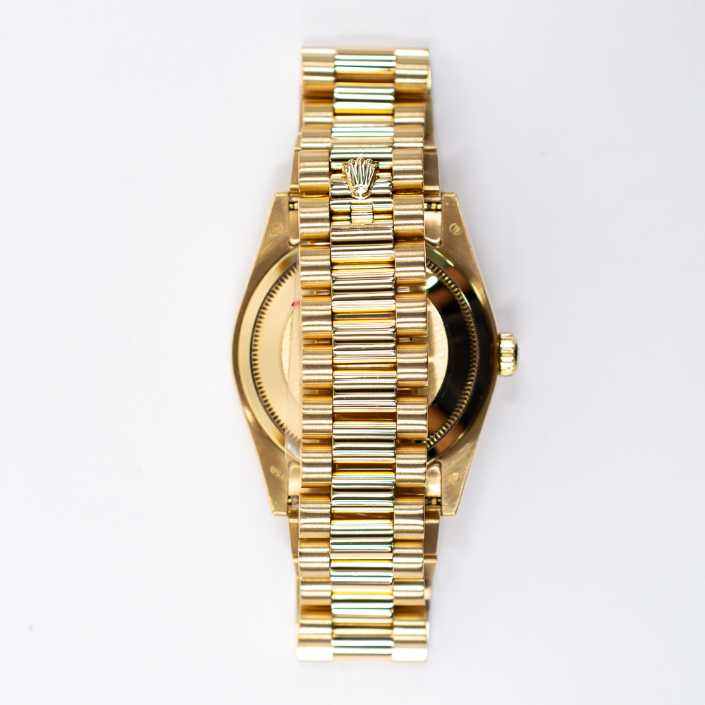 The Rolex Day-Date “President” Yellow Gold with a Pave Diamond Dial represents unmatched luxury and enduring prestige. This iconic release cemented the model as a symbol of leadership and refinement. Collectors continue to prize the Day-Date for its history, craftsmanship, and unmistakable presence.