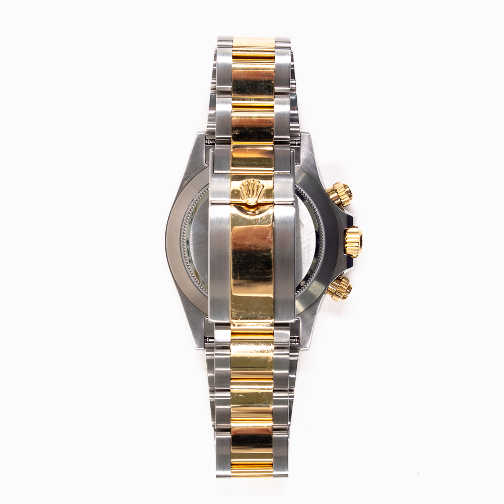The Oyster bracelet combines comfort and robustness, ensuring the watch sits securely on the wrist. This Rolex Daytona model embodies technical innovation, iconic design, and luxury appeal, making it a must-have for collectors. Its unique blend of stainless steel and yellow gold elevates its status, offering both versatility and sophistication.