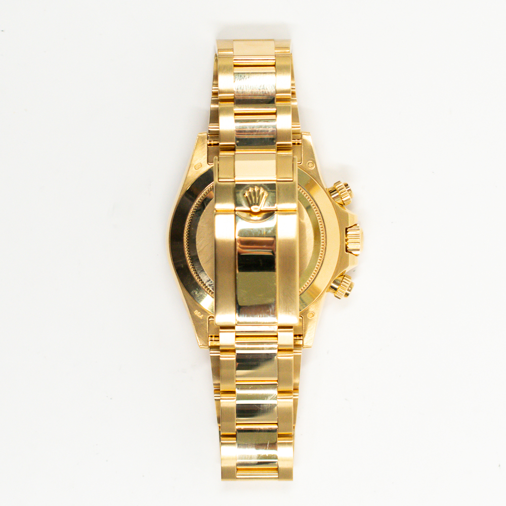 The chronograph subdials balance the dial perfectly, enhancing both function and symmetry. Rolex powers this reference with the in-house automatic Caliber 4130. Therefore, it delivers exceptional precision, durability, and a 72-hour power reserve. Furthermore, the Oyster bracelet in 18k yellow gold provides outstanding comfort and a seamless fit.