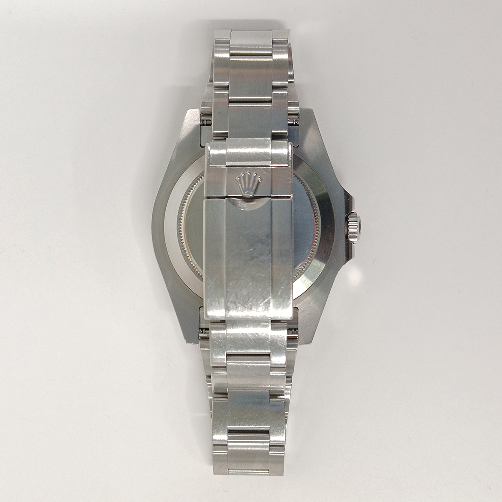 The 42mm Oystersteel case offers durability and strong wrist presence. In addition, its brushed finish enhances the watch’s tool-watch aesthetic. The fixed 24-hour bezel allows clear day-night tracking, even in dark environments. The black dial provides excellent contrast, while luminous markers and hands ensure visibility in all conditions.