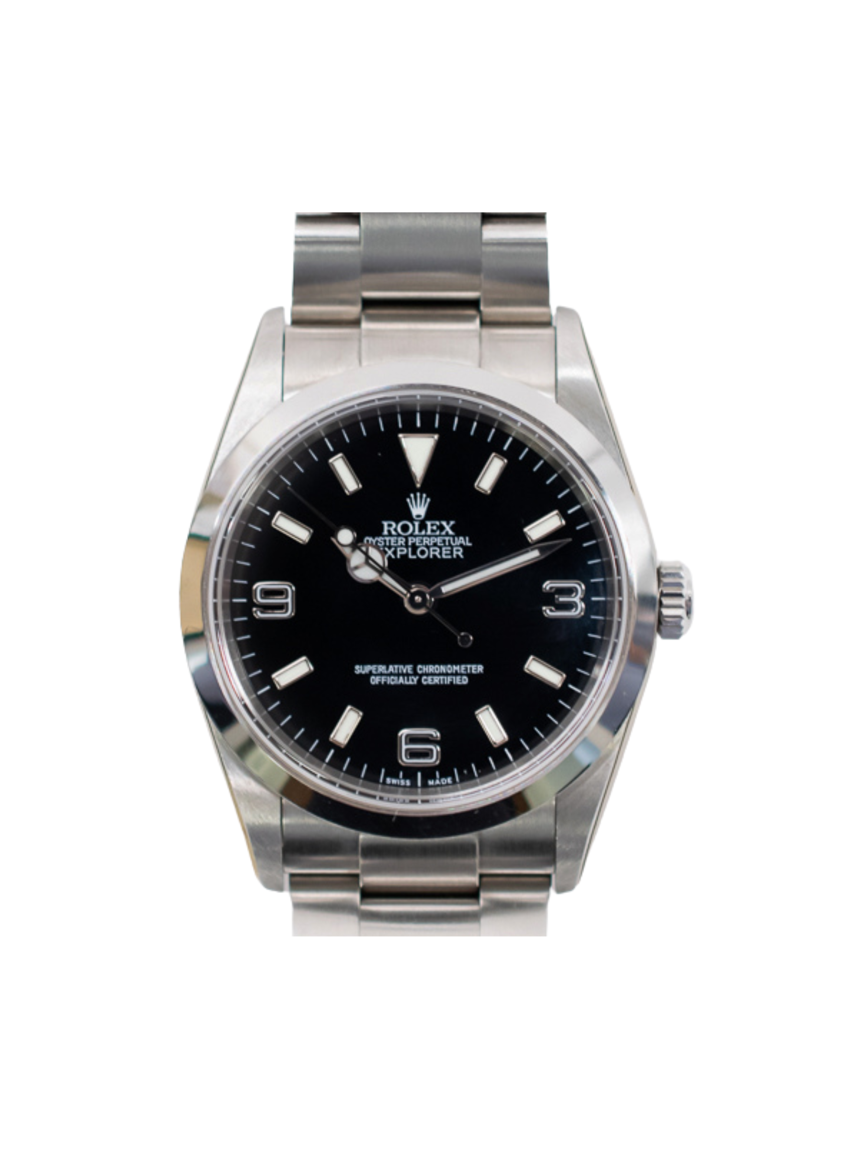 The Rolex Explorer Stainless Steel with a Black Dial is a legendary timepiece rooted in exploration and adventure. Introduced in the early 2000s, this model continues the Explorer’s heritage as a tool watch built for extremes. Its 36mm stainless steel case offers durability, comfort, and a timeless aesthetic that never fades.