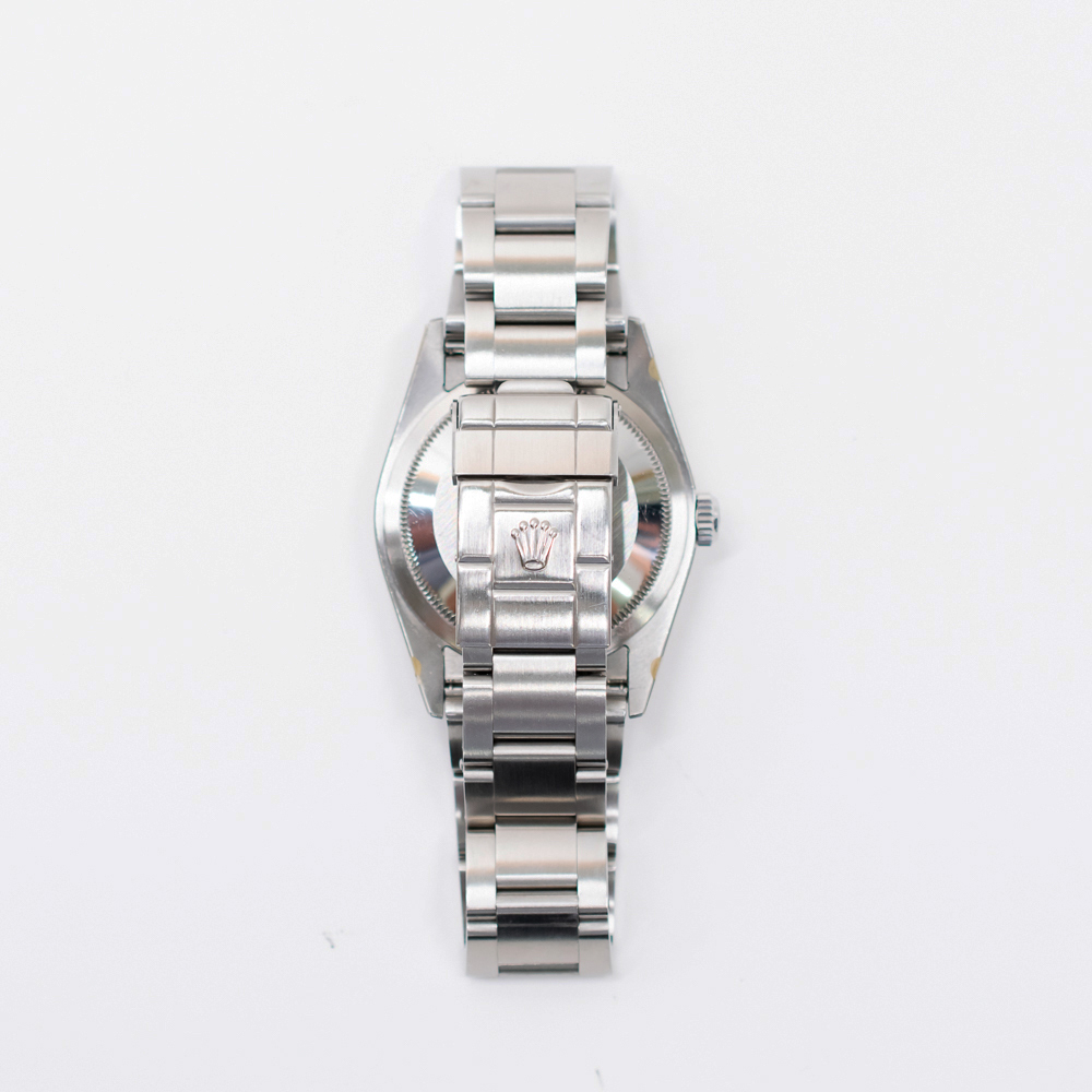 Inside, the watch houses the Rolex Caliber 3130 automatic movement. A Parachrom hairspring adds resistance against shocks and magnetic fields. Collectors value this movement for its proven reliability and lasting performance.