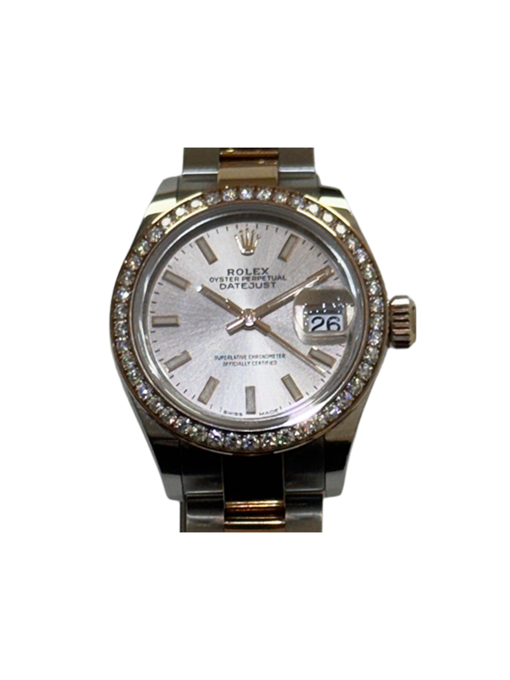 The standout sundust dial delivers a soft, radiant finish that shifts beautifully in changing light. The hour markers add brilliance while maintaining a balanced, refined look. The diamond-set bezel enhances its presence, offering exceptional sparkle without overpowering the design. Rolex pairs this model with an oyster bracelet, ensuring both comfort and timeless style.