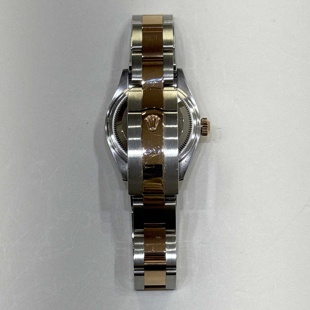 The Rolex Lady-Datejust Stainless Steel and Rose Gold with a Sundust Dial defines elegance with modern sophistication. This refined timepiece blends Rolex’s iconic design with contemporary luxury details. Its 28mm case pairs Oystersteel with 18k Everose gold for durability and warmth.