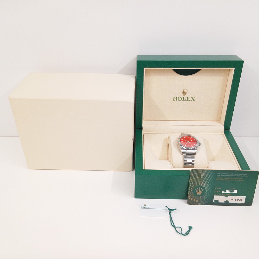 The Rolex Oyster Perpetual 31 Stainless Steel Coral Red Dial 277200 combines Rolex’s timeless design with bold, modern color. Moreover, this reference showcases the brand’s commitment to clarity, precision, and everyday versatility. As a result, it appeals to collectors and wearers seeking a statement piece that is both elegant and wearable.