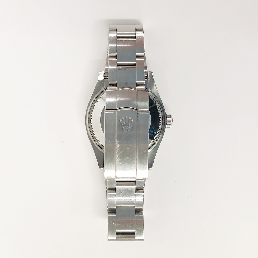 First, the watch features a 31 mm Oystersteel case, offering a balanced presence on the wrist. The polished finish and smooth lines create a refined look that works for casual and dress occasions alike. In addition, Rolex’s Oyster case construction provides water resistance to 100 meters, ensuring reliable durability for daily wear.