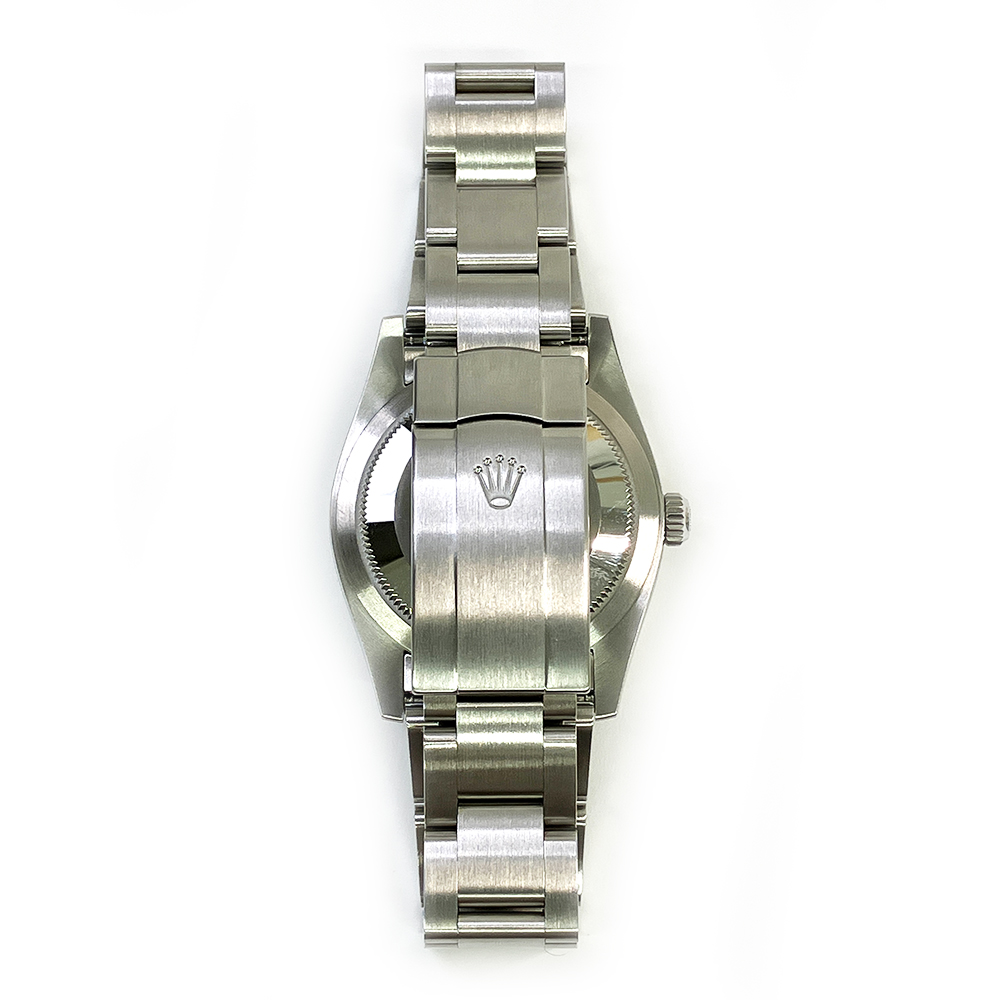 The Oyster bracelet, fitted with the Oysterclasp and Easylink extension, ensures comfort and versatility. Its seamless integration with the case reflects Rolex’s attention to detail. Collectors value this model for its versatile size and refined simplicity. The 34mm case offers a unisex appeal, making it a popular choice among enthusiasts.