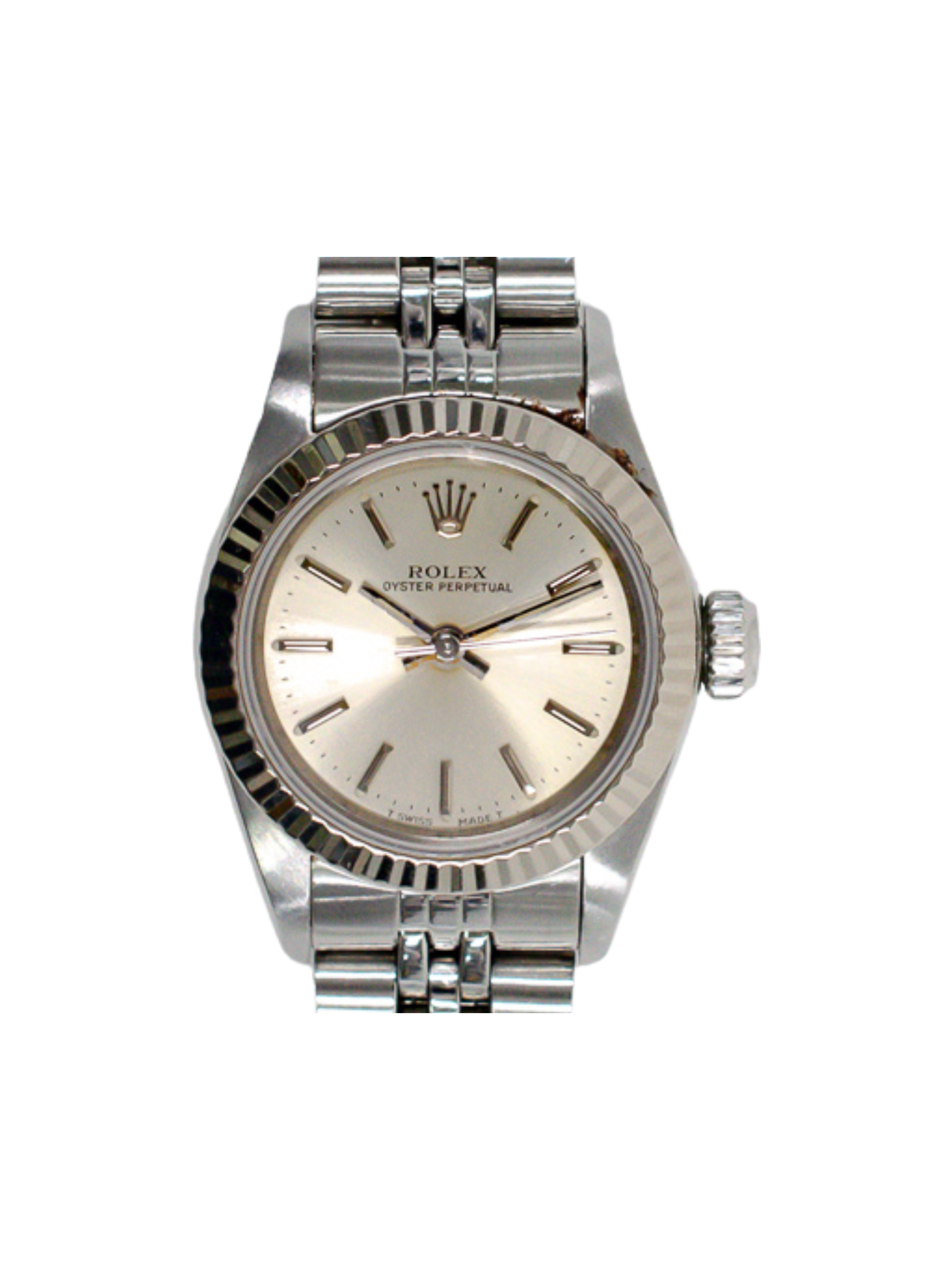 Rolex Oyster Perpetual Stainless Steel/White Gold Silver Stick Dial 67194