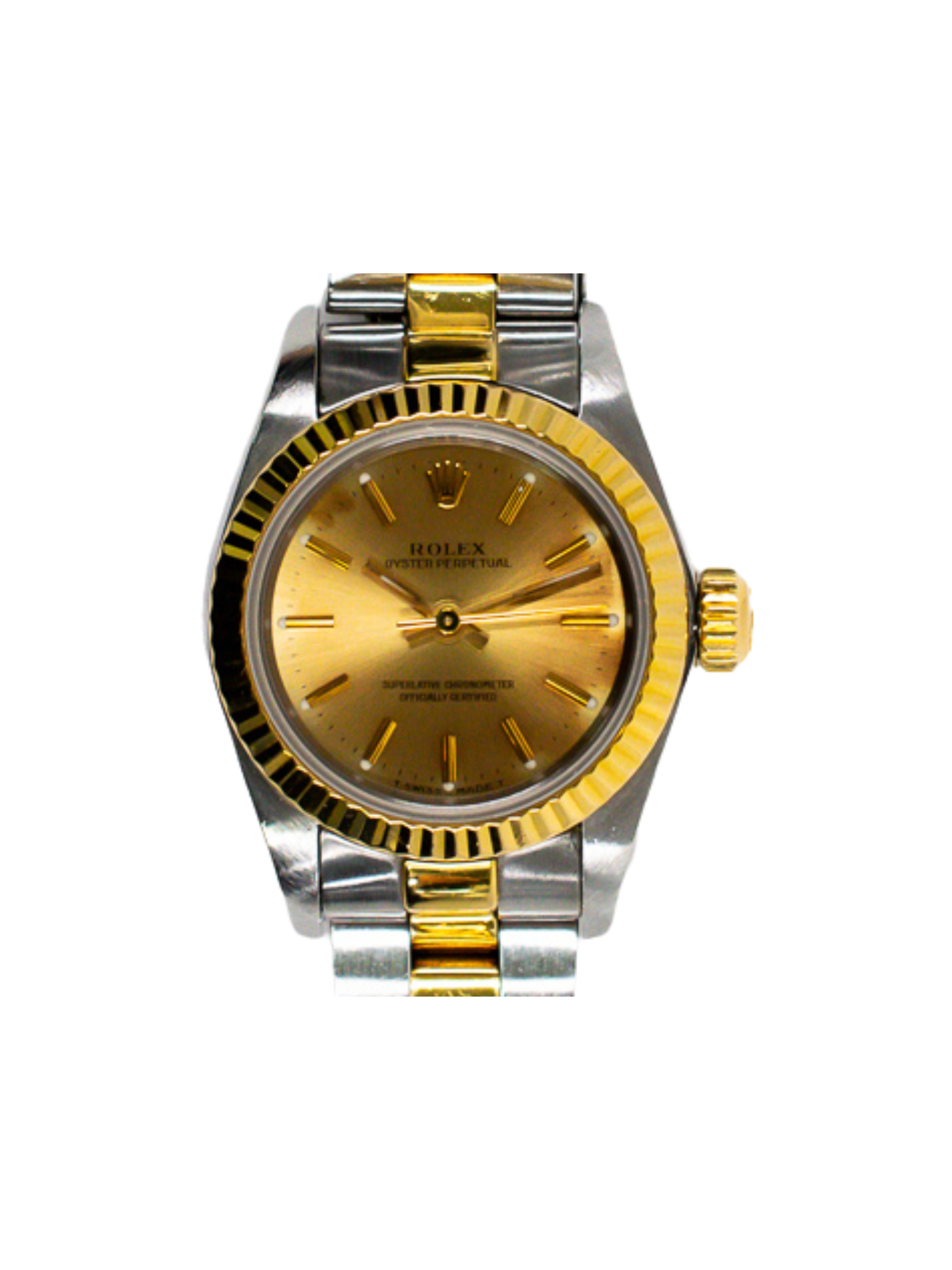 Rolex Oyster Perpetual Stainless Steel/ Yellow Gold Champagne Stick Dial 67193