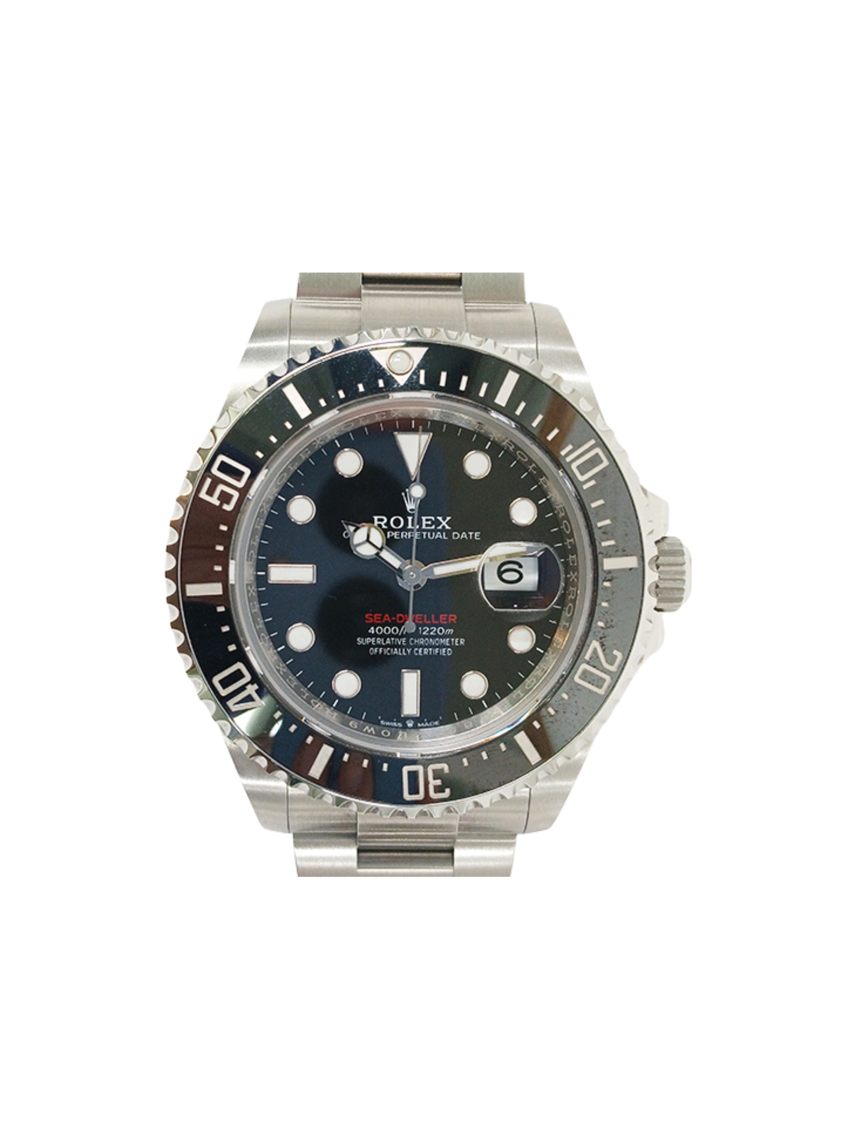 Rolex crafts the case from corrosion-resistant 904L Oystersteel. As a result, the watch withstands extreme marine environments. The unidirectional Cerachrom bezel features a durable black ceramic insert. In addition, engraved 60-minute graduations allow precise dive timing.