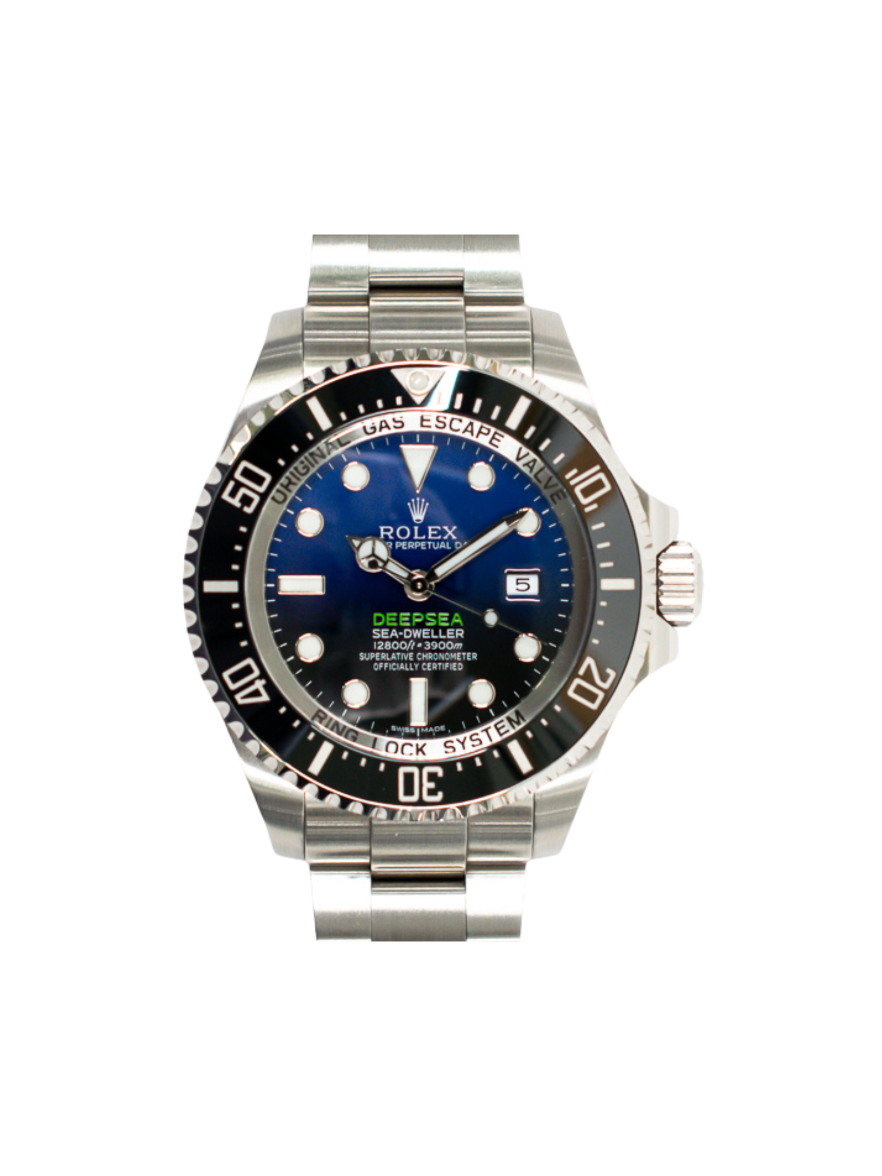 The Rolex Sea-Dweller Deepsea Stainless Steel with D-Blue Dial represents the perfect fusion of deep-sea engineering and refined luxury. Crafted from durable 904L stainless steel, this exceptional diver’s watch offers remarkable strength and superior corrosion resistance. Moreover, its bold 44mm case ensures incredible durability and water resistance up to 12,800 feet (3,900 meters). Designed specifically for extreme underwater exploration, it sets a new benchmark for performance, precision, and reliability.