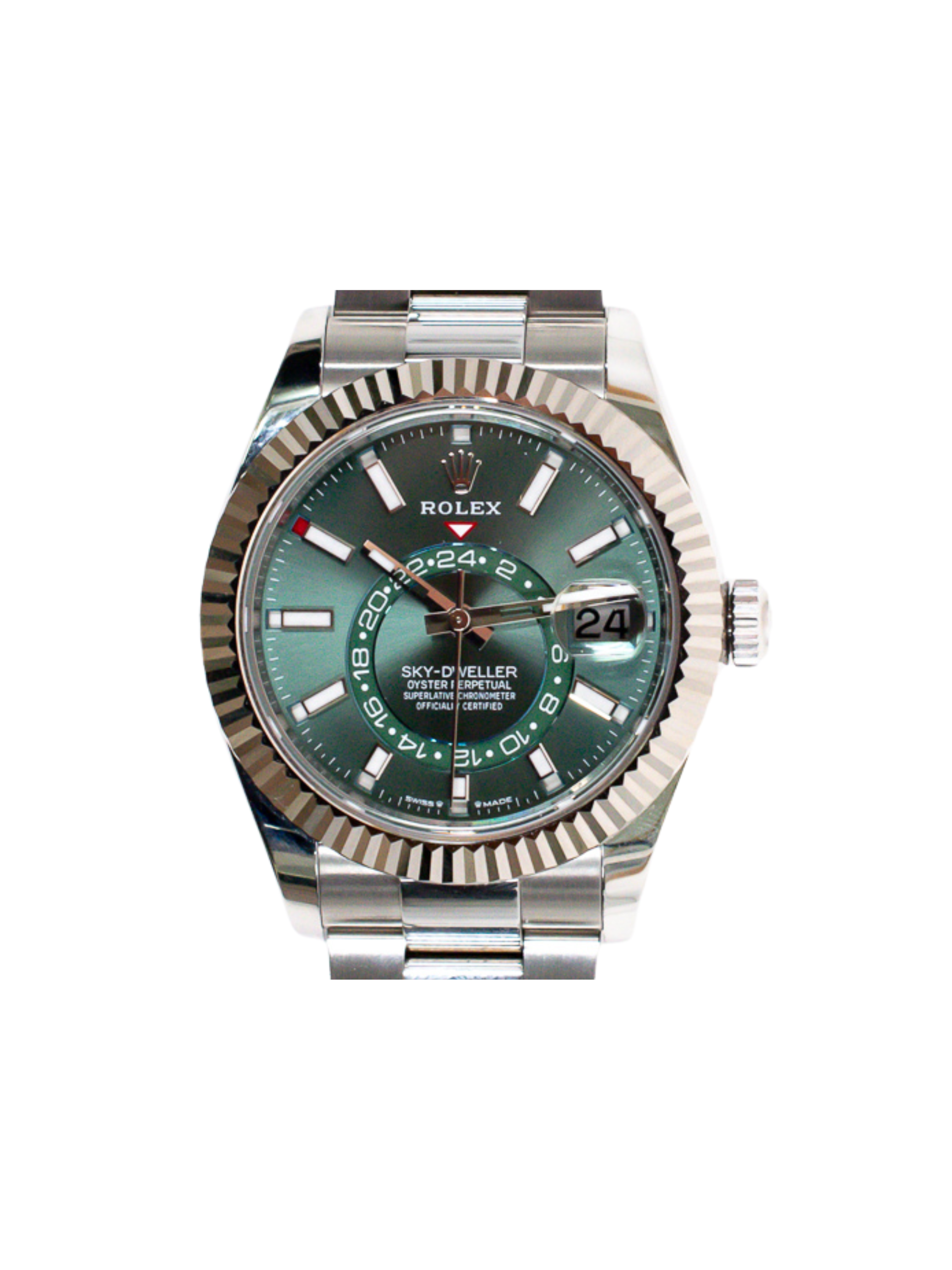 Rolex Sky-Dweller Stainless Steel and White Gold Mint Green Stick Dial 336934