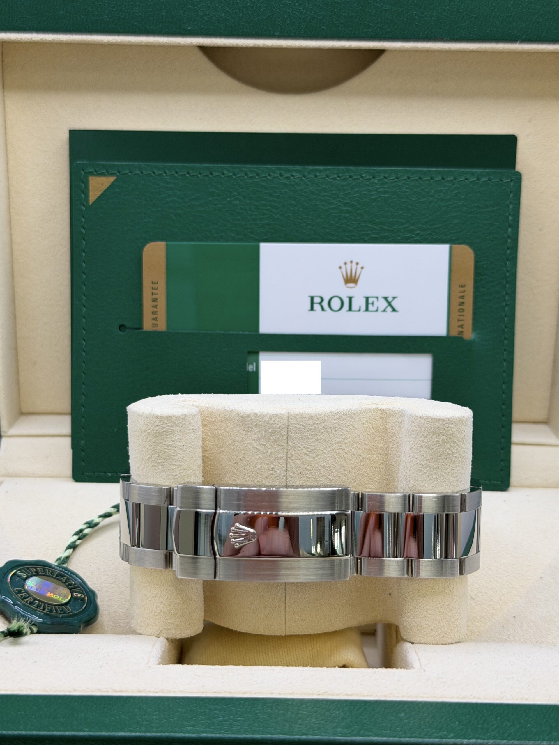 Inside beats the Rolex Caliber 9001, one of the brand’s most complex movements. It delivers precision, reliability, and an impressive power reserve. The Oyster bracelet ensures comfort while reinforcing the watch’s sporty elegance.