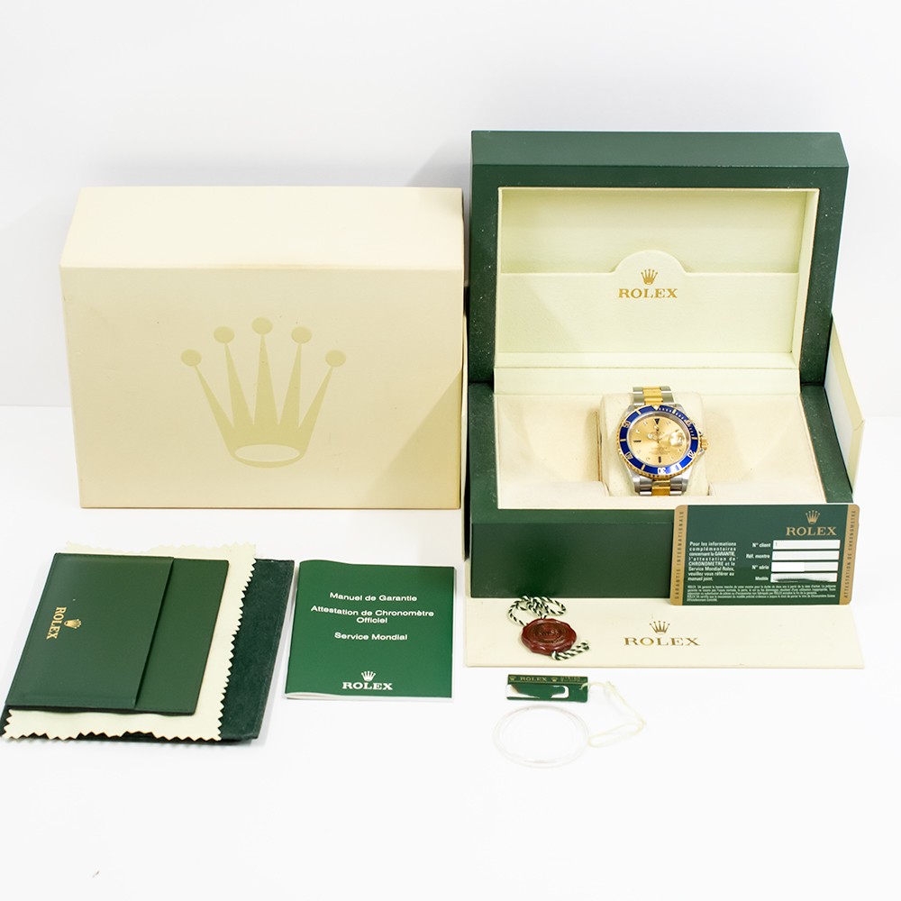 Rolex Submariner Date Blue Bezel Steel/Yellow Gold Champagne “Serti” Dial 16613SG