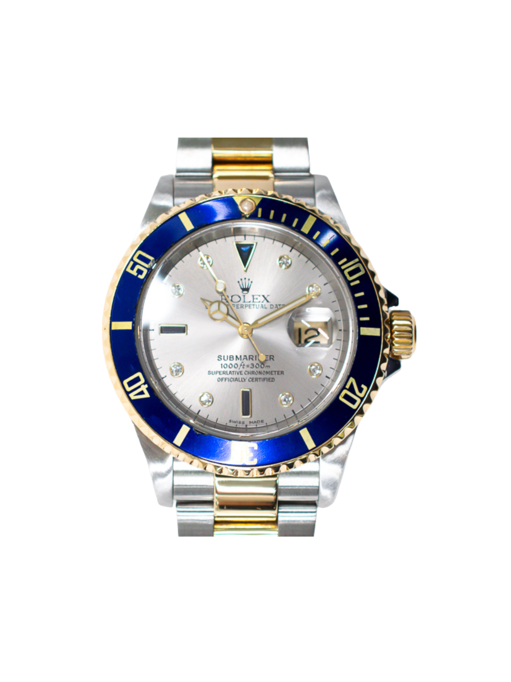 Rolex Submariner Date Stainless Steel and Yellow Gold Silver Diamond Dial 16613SG