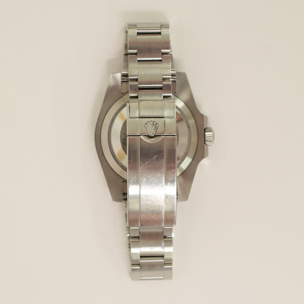 The 40 mm Oystersteel case provides strength and corrosion resistance. In addition, the black Cerachrom bezel rotates in one direction for precise dive timing. The ceramic insert resists scratches and keeps its sharp look over time.