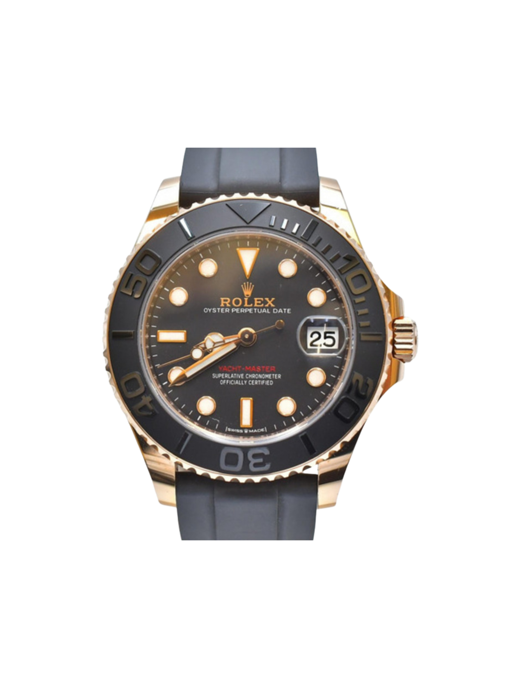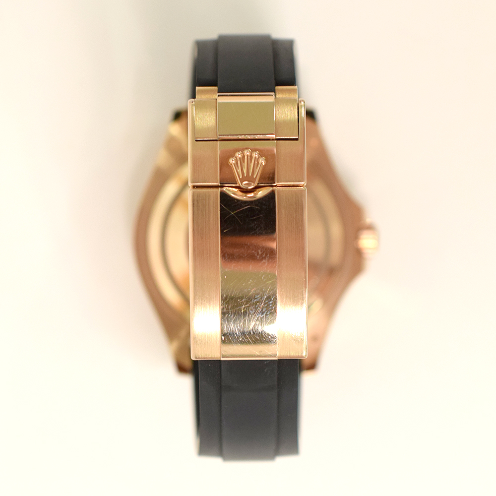 The Rolex Yacht-Master 37 Rose Gold and Black Dial 268655 runs on a precise automatic movement. It delivers reliable accuracy and smooth performance. The Oysterflex bracelet also adds comfort and flexibility while keeping a secure fit.